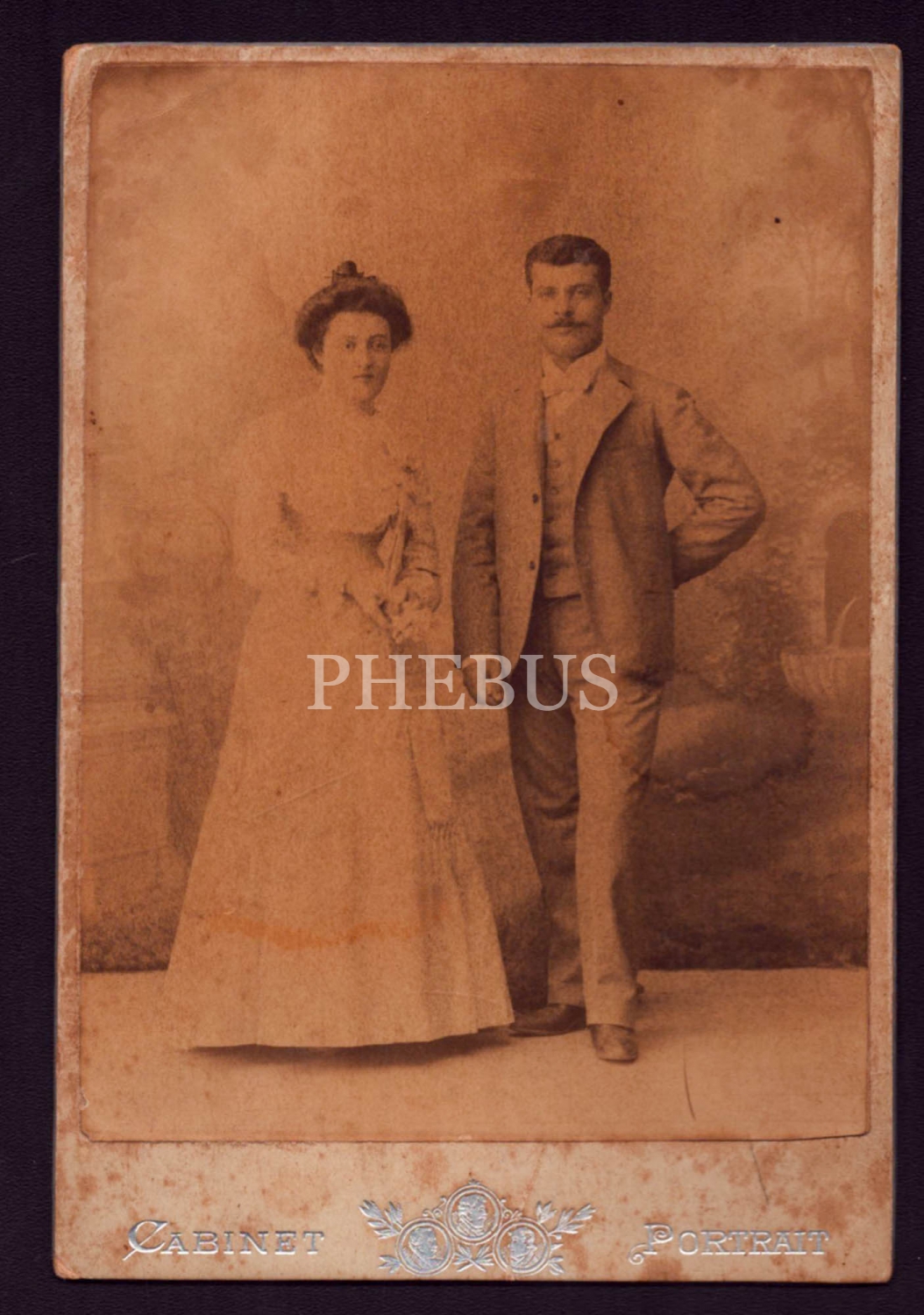 Osmanlı döneminden, modern giyinişli çiftin stüdyo hatıra fotoğrafı, Leonidas Nicolaou, Andrinople (Edirne), 11x16 cm...