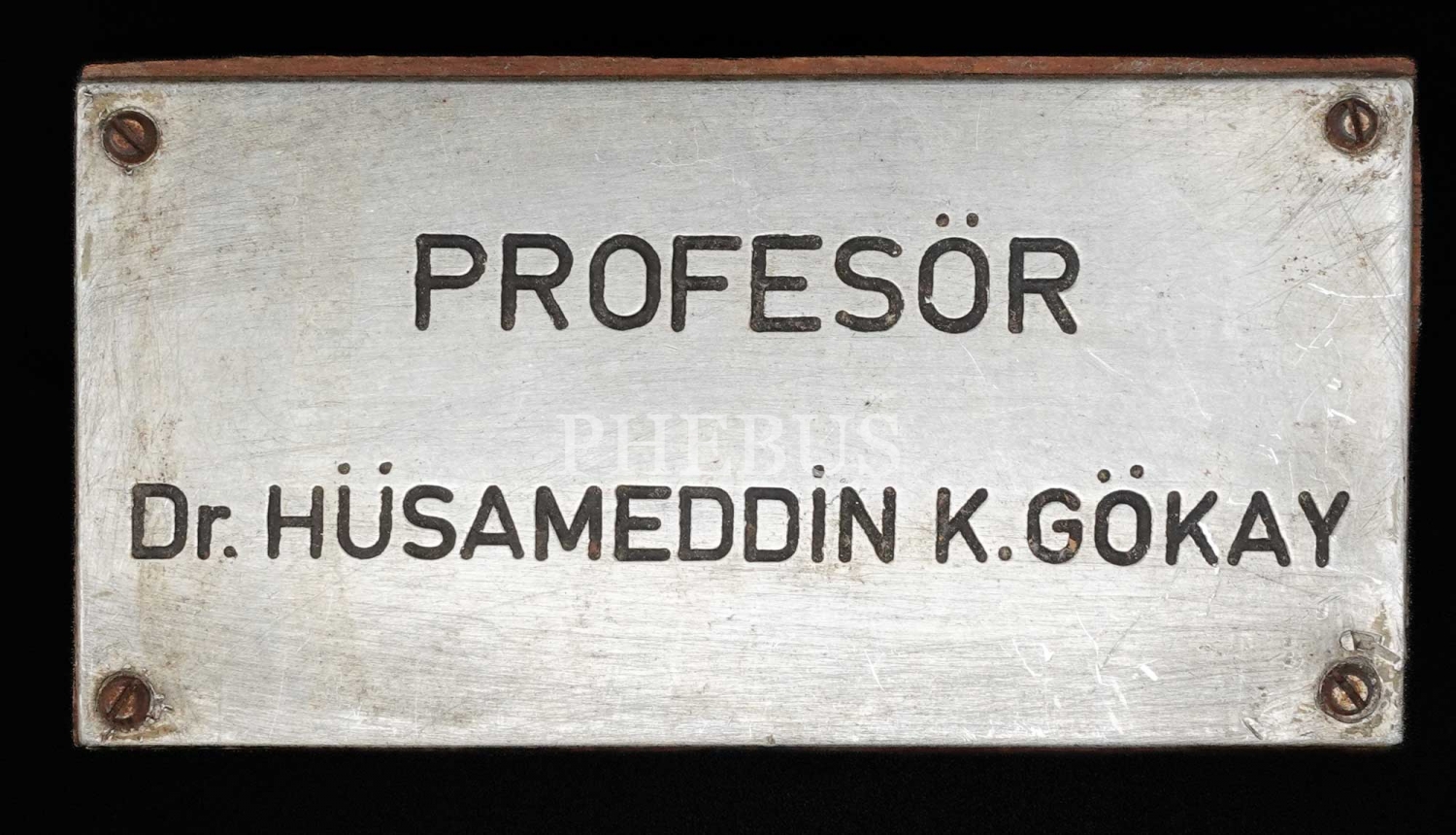 "Profesör Dr. Hüsamettin K. Gökay" yazılı tabela, 14x7 cm...