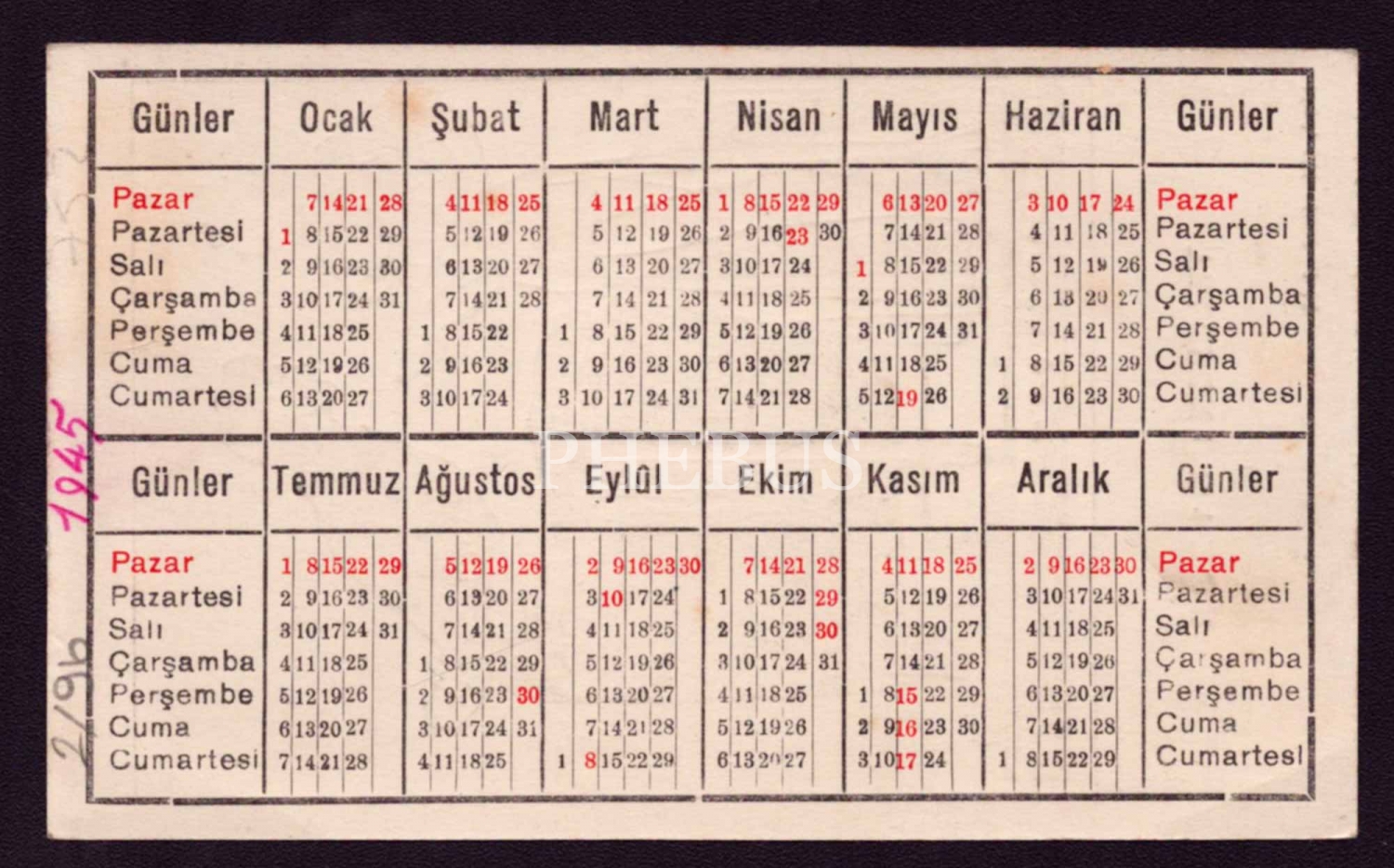 "İntibah Çamaşır Makinesi" reklamlı takvim kartı, 14x9 cm...