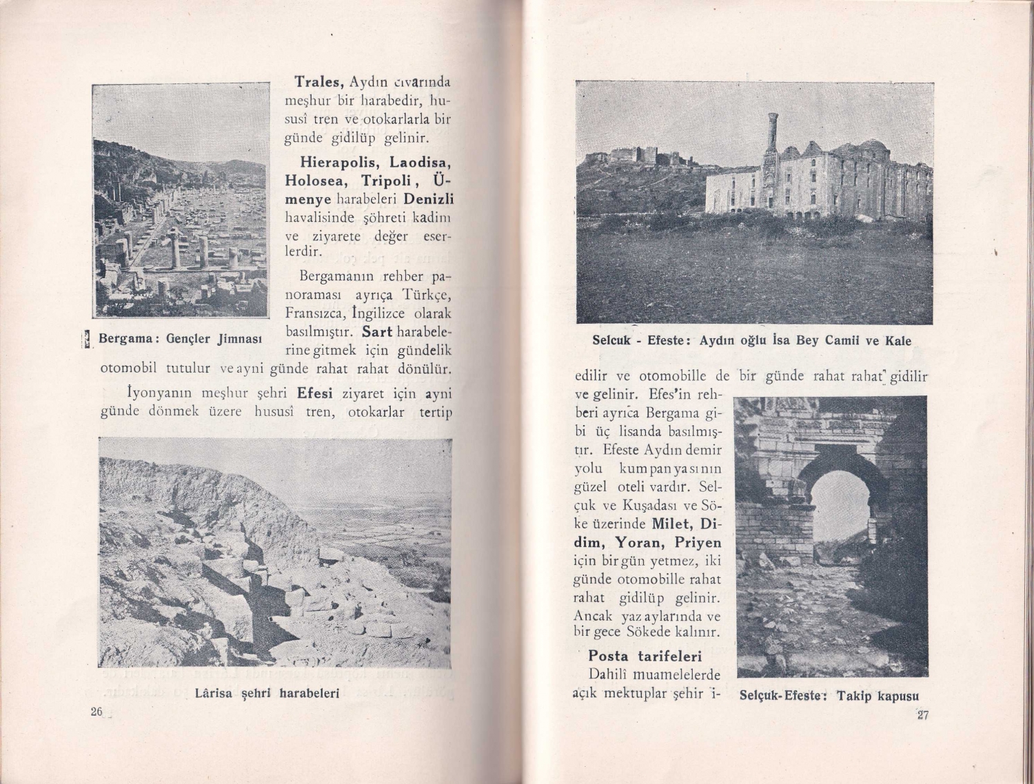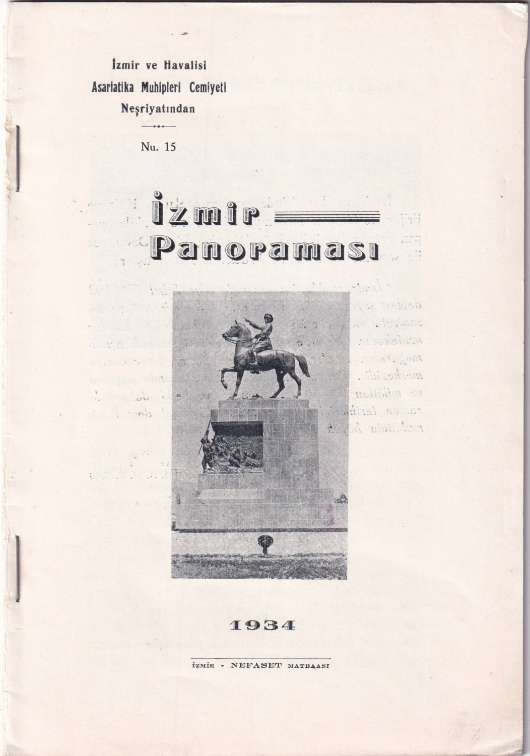 İzmir Panoraması, Nefaset Matbaası, İzmir 1934, resimli, arka kapak haritalı, sayfalar ciltten kopuk, 44 sayfa, 14x20 cm