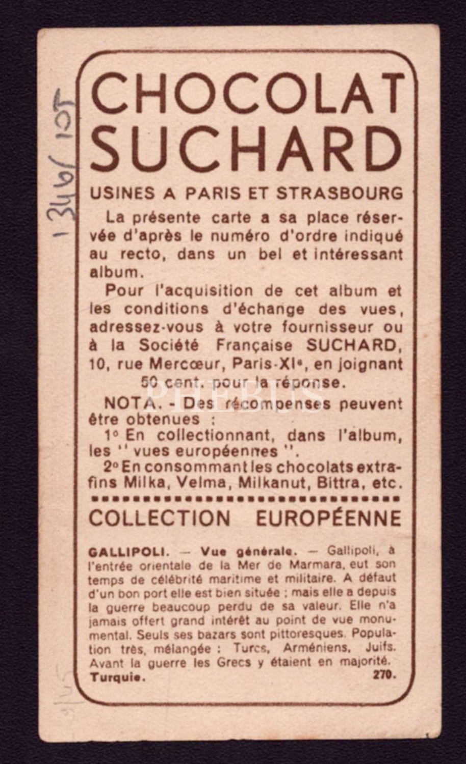 "Chocalat Suchard" markasının hazırladığı, Gelibolu Yarımadası görselli çikolata kartı, 10x6 cm...