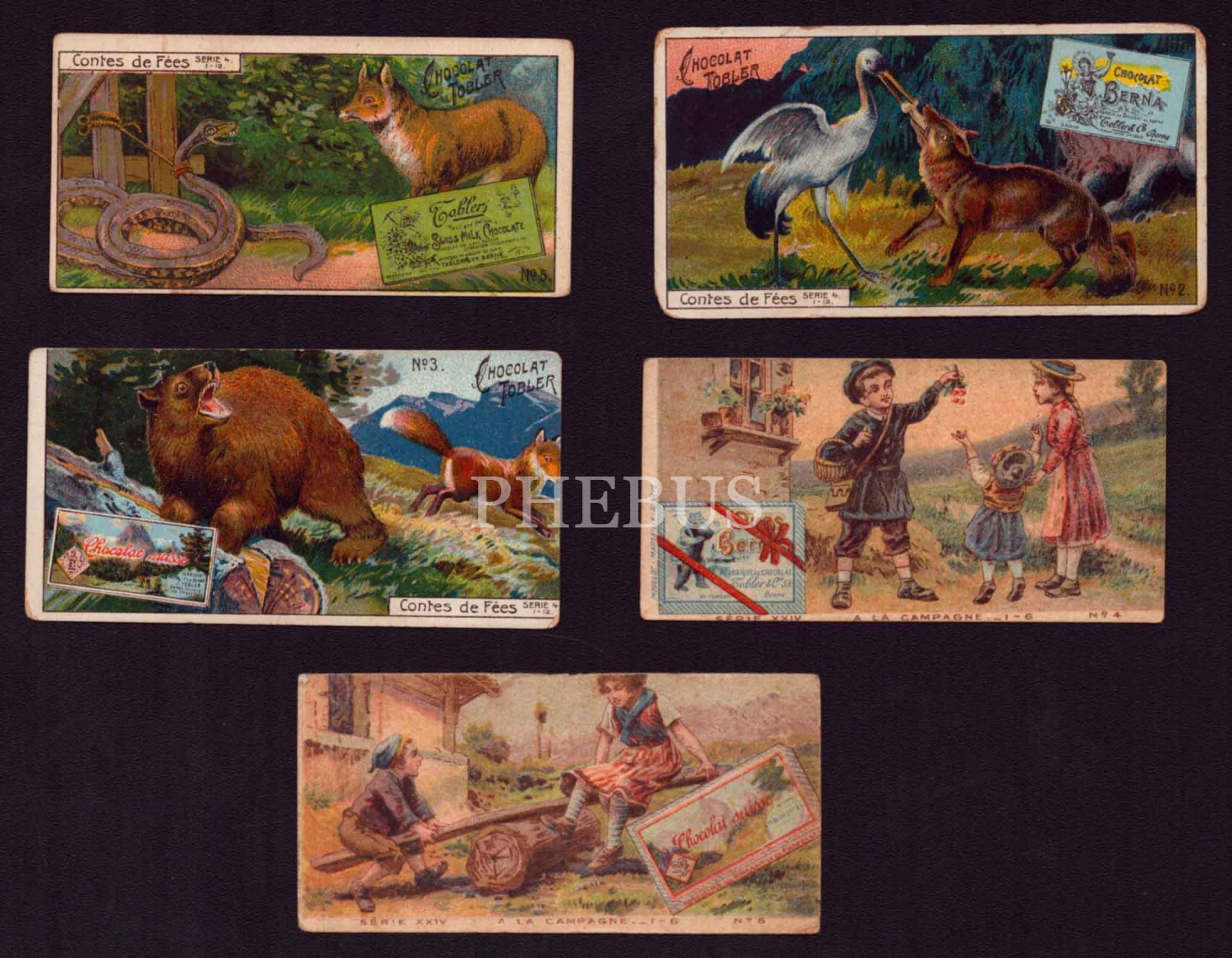 "Chocalat Toblar" markasının hazırladığı, çocuk ve hayvan görselli çikolata kartları, 5 adet, 9x5 cm...