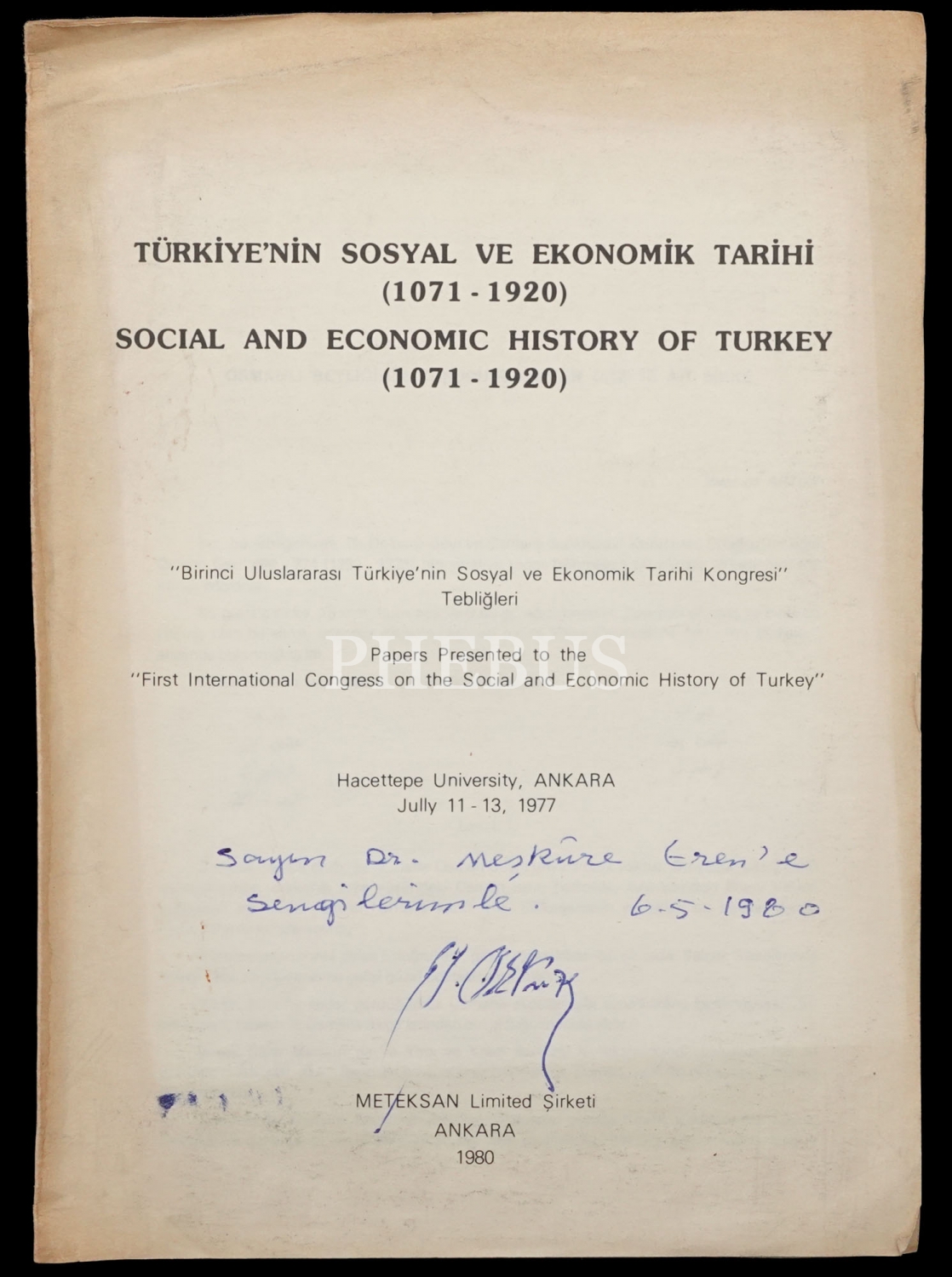 "Sayın Doktor Meşkure Eren´e sevgilerimle" ithafıyla imzalıdır.