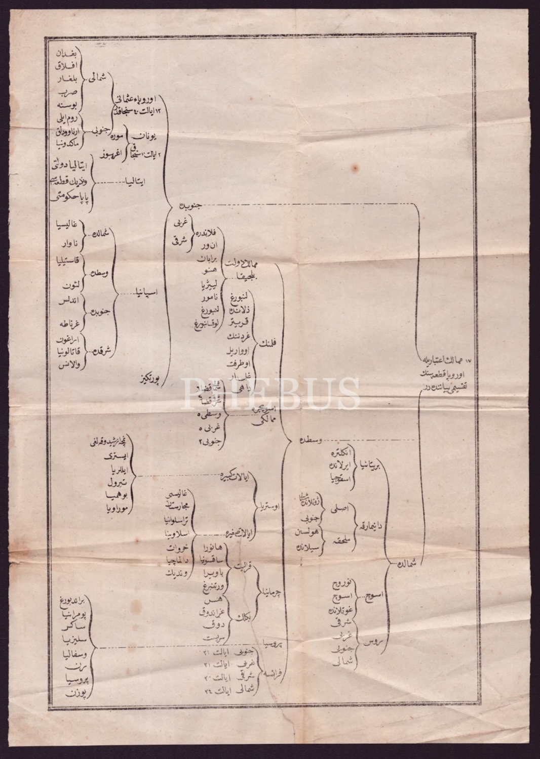 Osmanlı Devleti´nin Avrupa kıtasında bulunan topraklarının taksimini gösteren evrak, 25x35 cm...