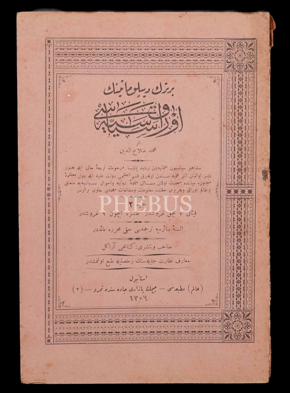 BİR TÜRK DİPLOMATININ EVRAK-I SİYASİYESİ (1, 2 ve 4. Cüz), Mehmed Selahaddin, 1306, Alem Matbaası, 318 sayfa, 16x24 cm...