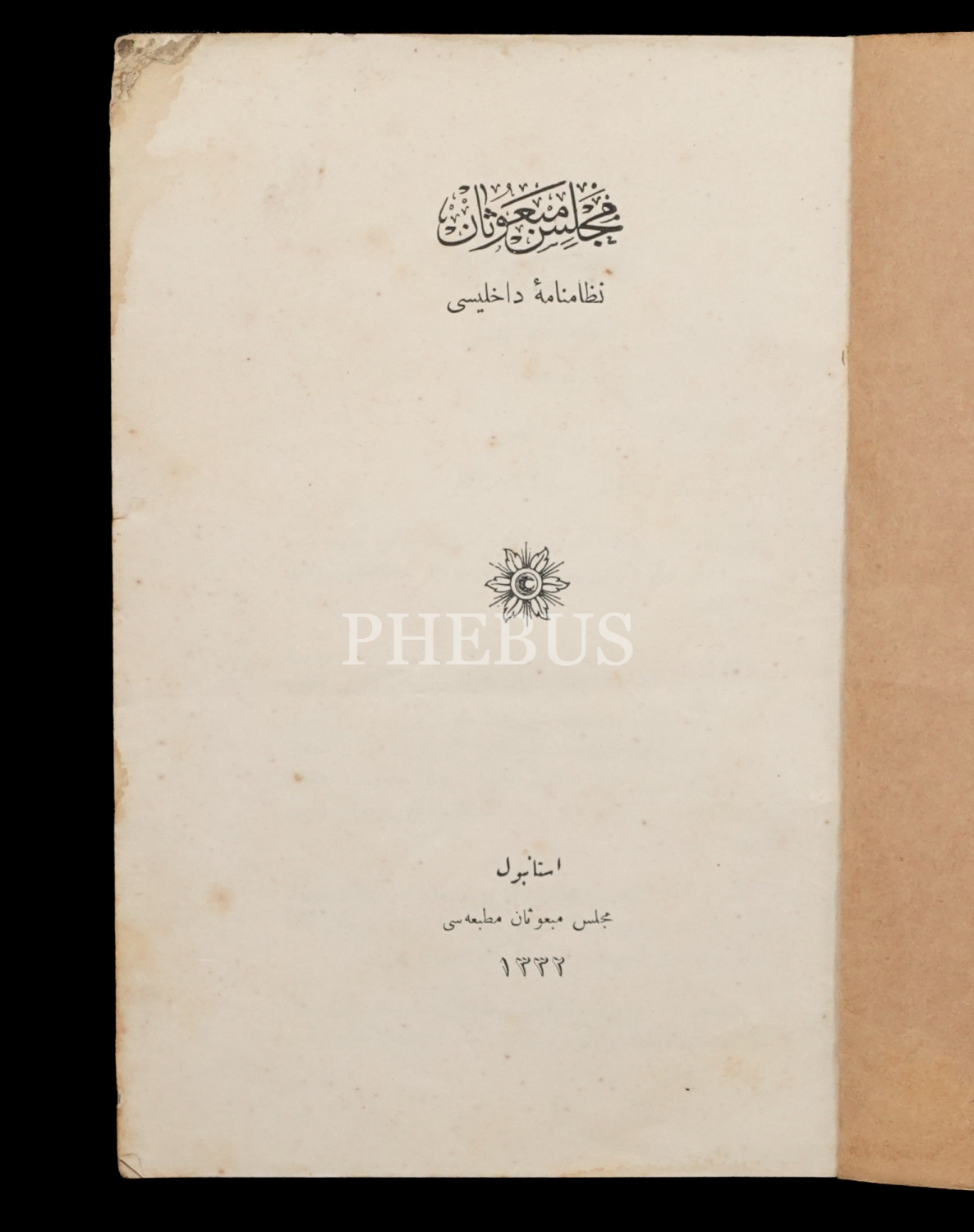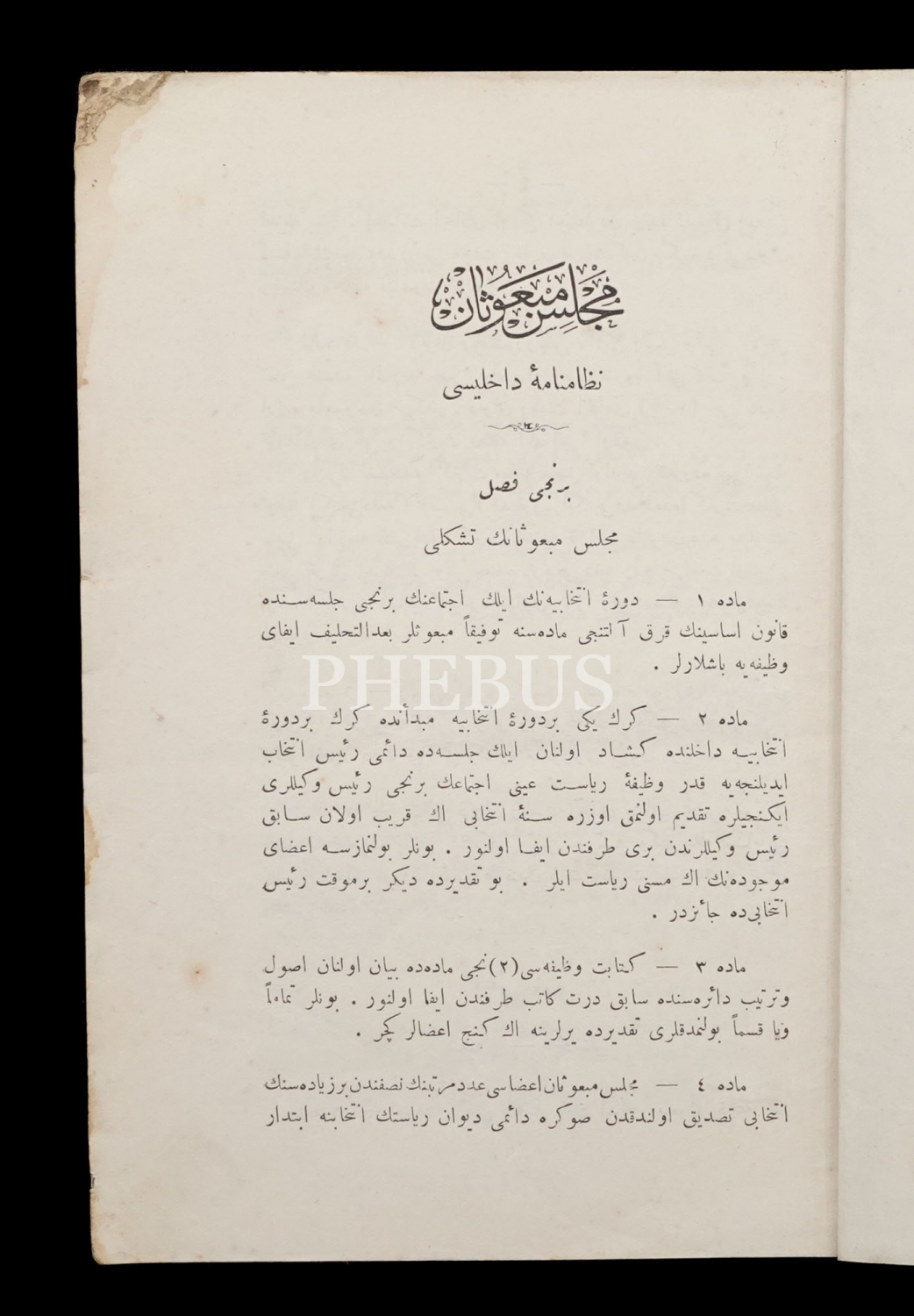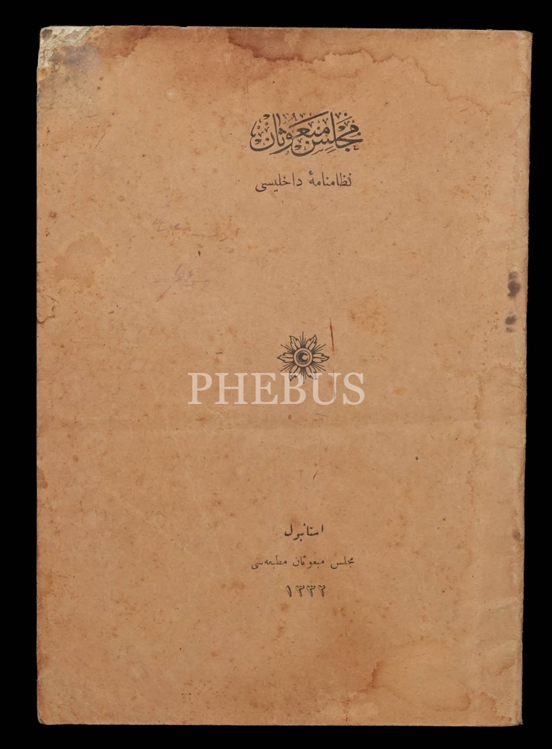 MECLİS-İ MEBUSAN NİZAMNAME-İ DAHİLİSİ, 1332, Meclis-i Mebusan Matbaası, 50 sayfa, 14x20 cm...