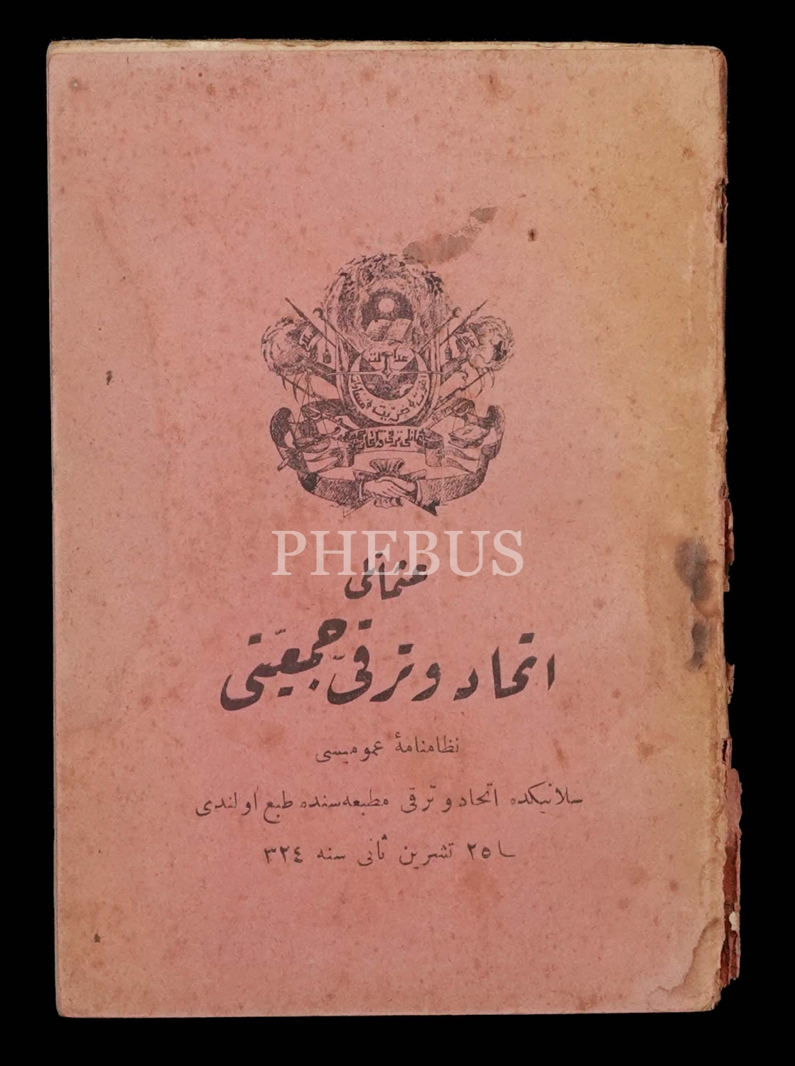 OSMANLI İTTİHAT VE TERAKKİ CEMİYETİ NİZAMNAME-İ UMUMİSİ, 1324, Selanik İttihad ve Terakki Matbaası, 62 sayfa, 11x15 cm...