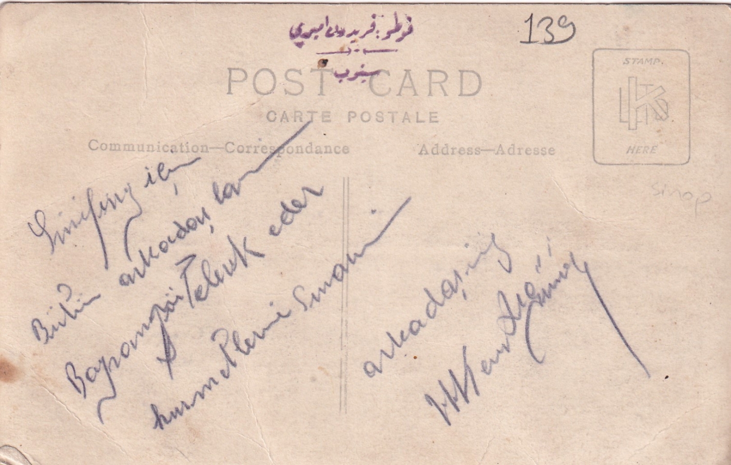 Sinop umumi manzara, arkası bayram tebrikli, Osmanlıca Foto Feridun Emiri, Sinop