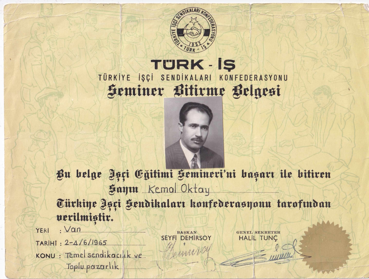 Türk - İş seminer bitirme belgesi, Van, 1965, 24x18 cm