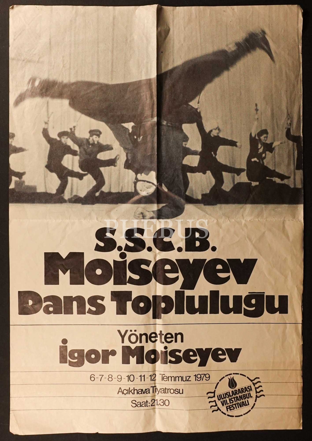 S.S.C.B. Moiseyev Dans Topluluğu afişi, yöneten: İgor Moiseyev, 6-12 Temmuz 1979, Uluslararası VII. İstanbul Festivali, 58x83 cm...
