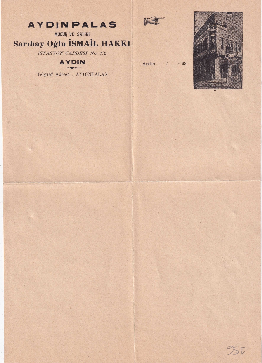 Aydın Palas Sarıbay Oğlu İsmail Hakkı - Aydın antetli boş doküman, 20x30 cm