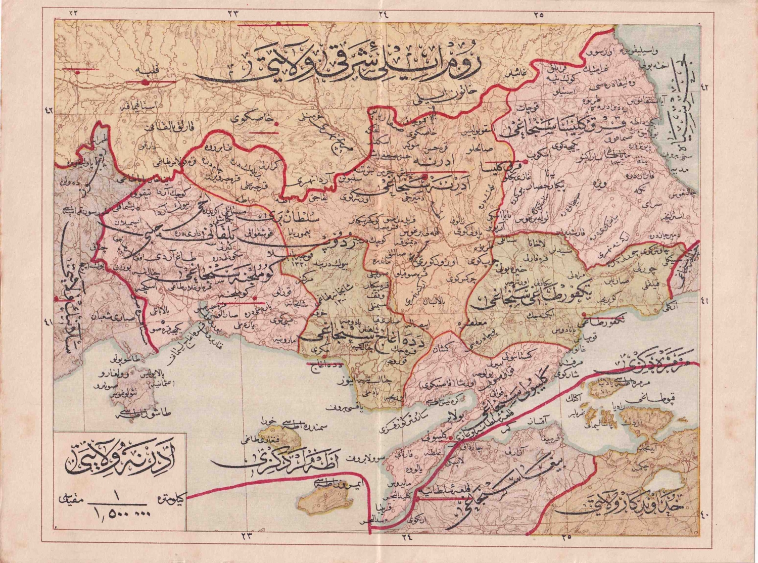 Osmanlıca Edirne Vilayeti haritası, 25x20 cm