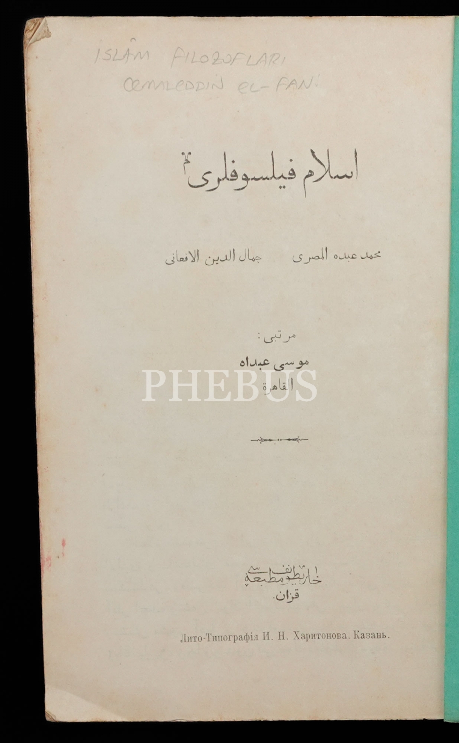 İSLAM FİLOSOFLARI, Muhammed Abduh el-Mısrî, Cemaleddin Efgani, 1333, Haritonef Matbaası Kazan (Rusya), 134 sayfa, 14x22 cm...