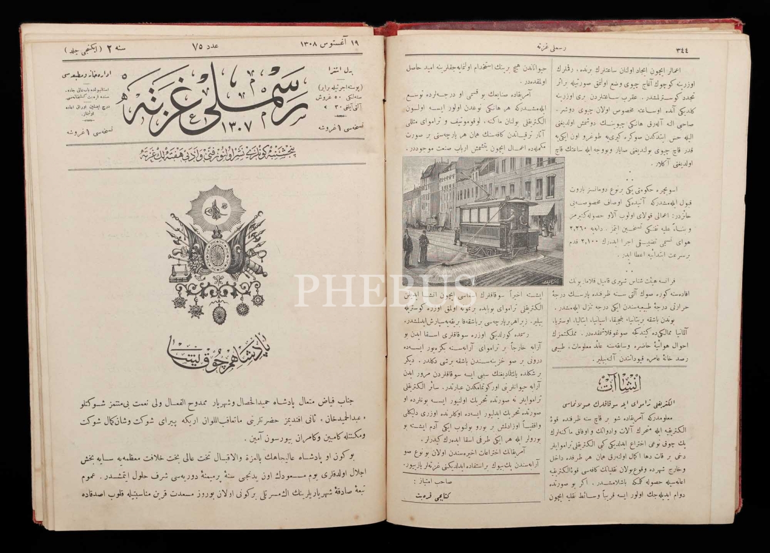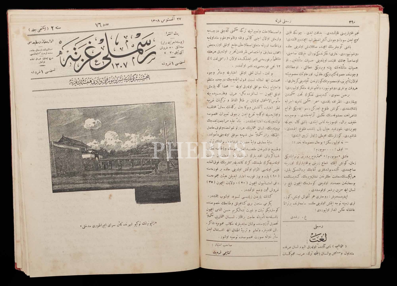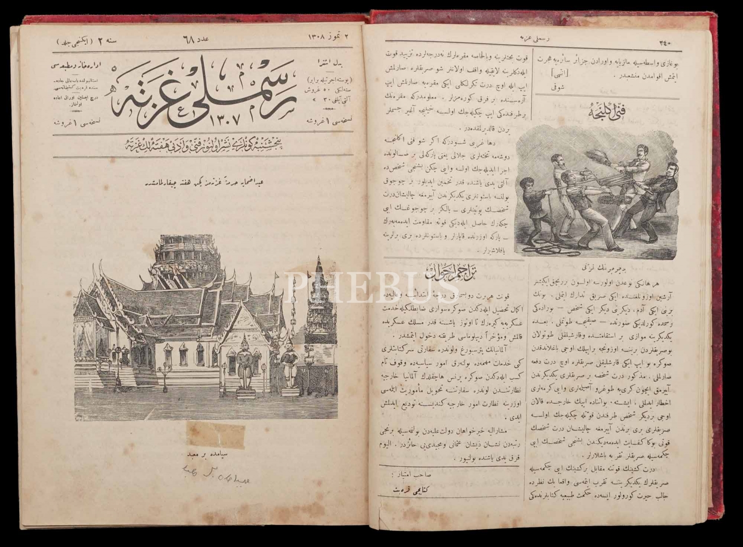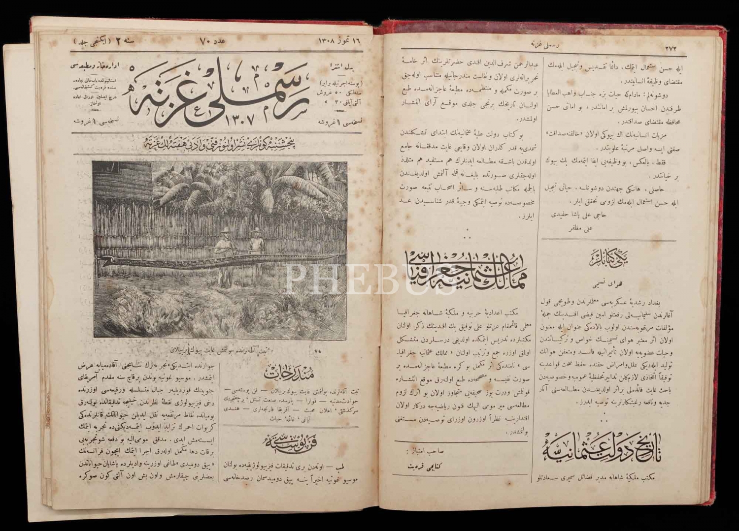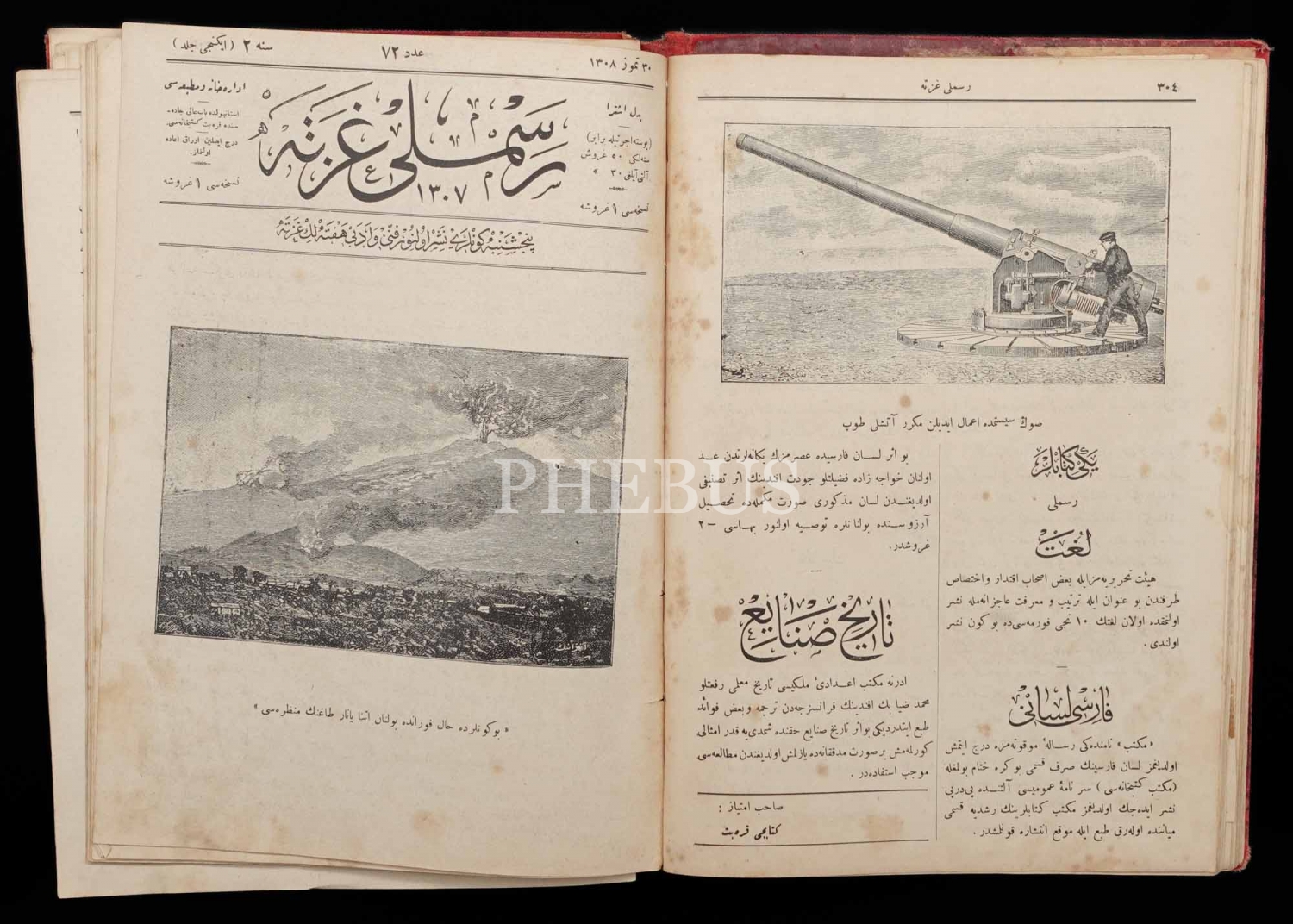2 Temmuz 1308 ile 10 Eylül 1308 tarihleri arasında yayımlanan RESİMLİ GAZETE´nin 68 ile 78 arası sayıları, 20x28 cm...