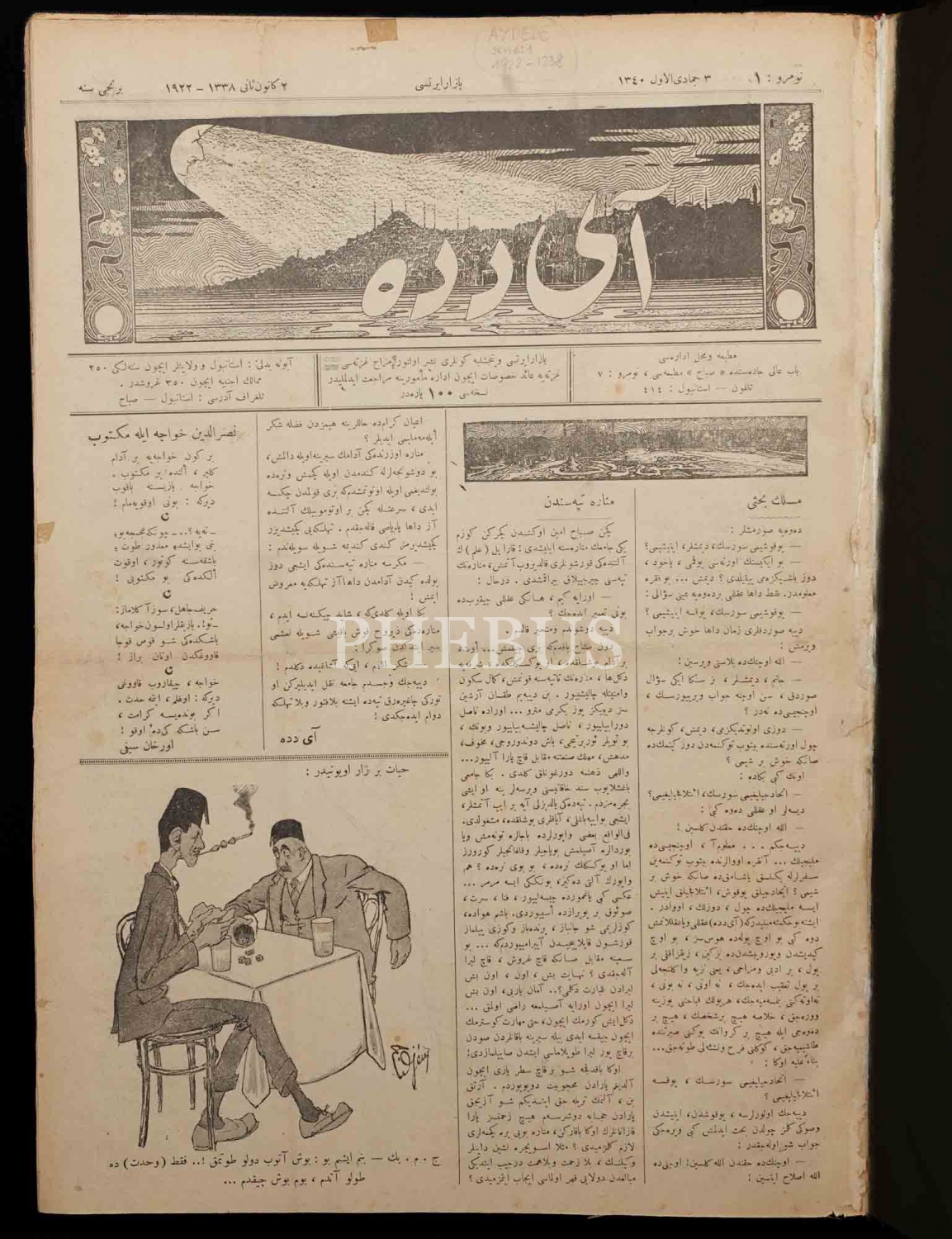 2 Ocak 1922 ile 9 Kasım 1922 tarihleri arasında yayımlanan AYDEDE dergisinin ilk 90 sayısı (takım), 29x41 cm...