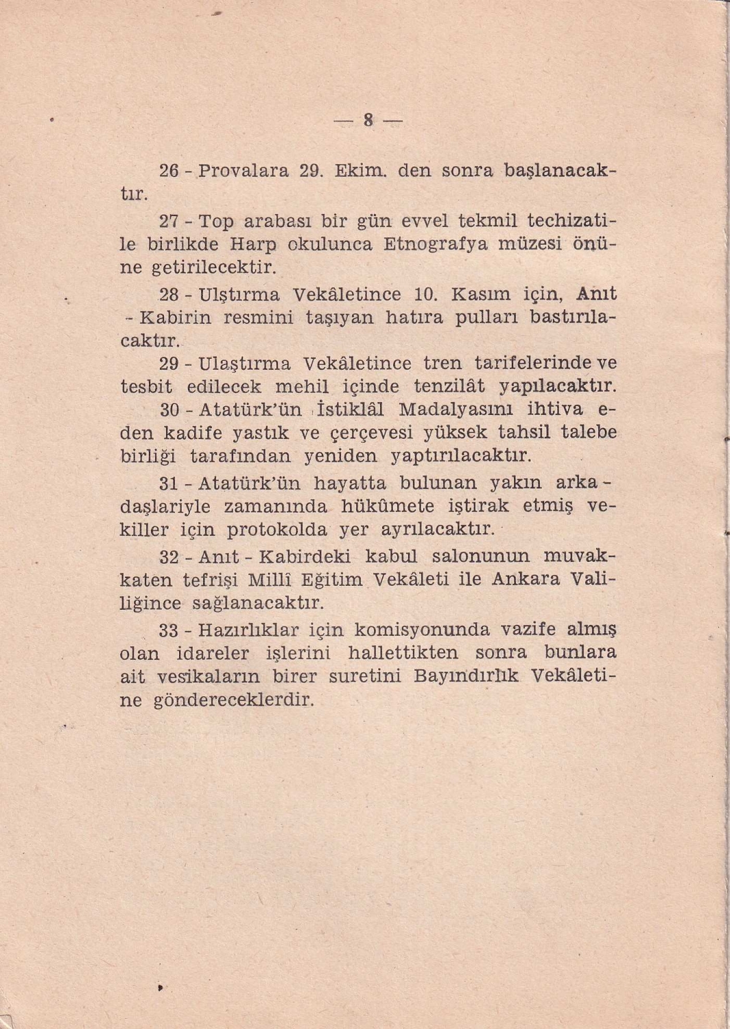 Büyük Atatürk'ün Anıt - Kabire defin merasimi talimatnamesi, 8 sayfa, 12x16 cm
