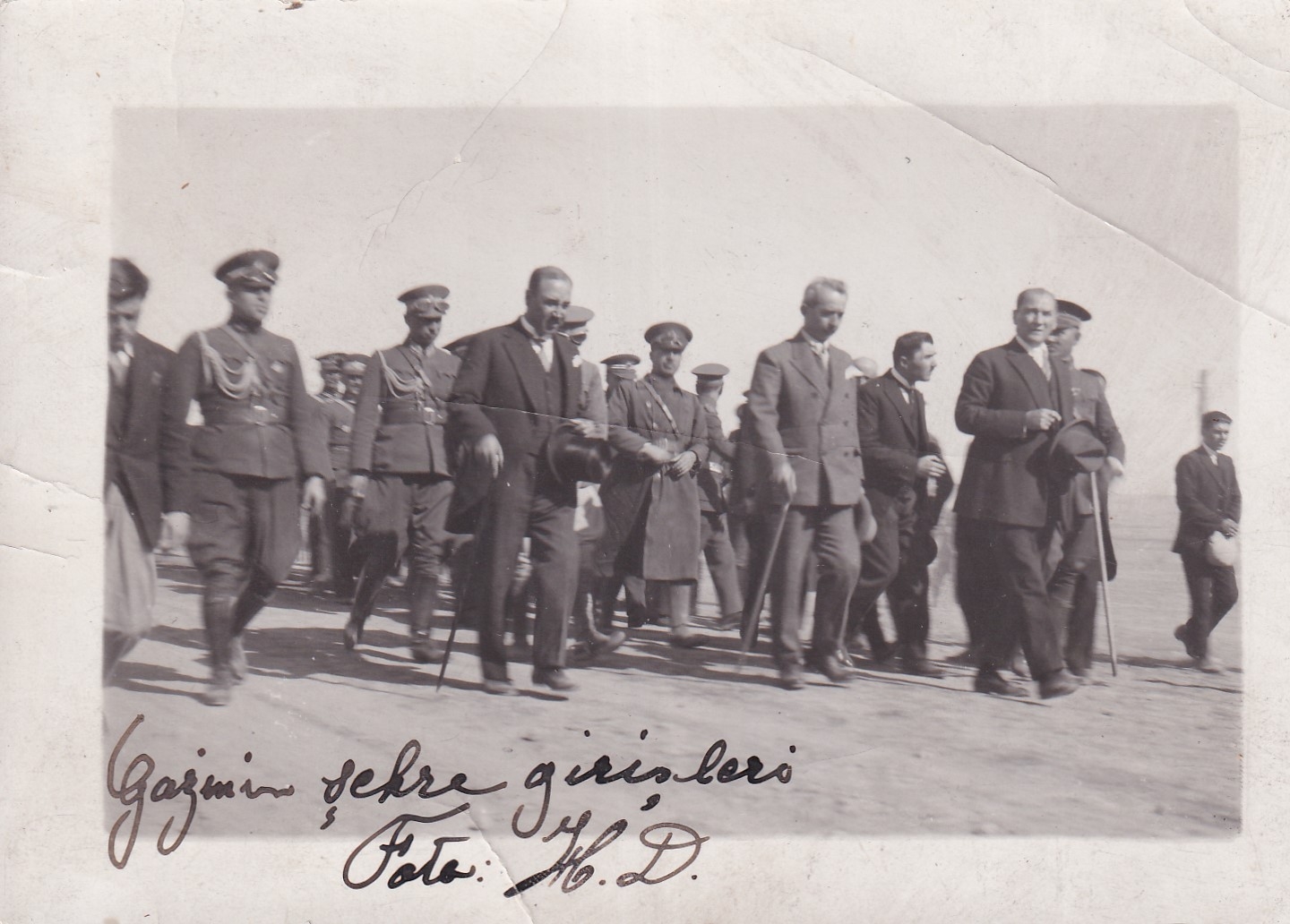 Gazi Mustafa Kemal Atatürk, İsmet İnönü, Maarif Vekili Necati Bey'in şehre girişleri, foto Hayri D.