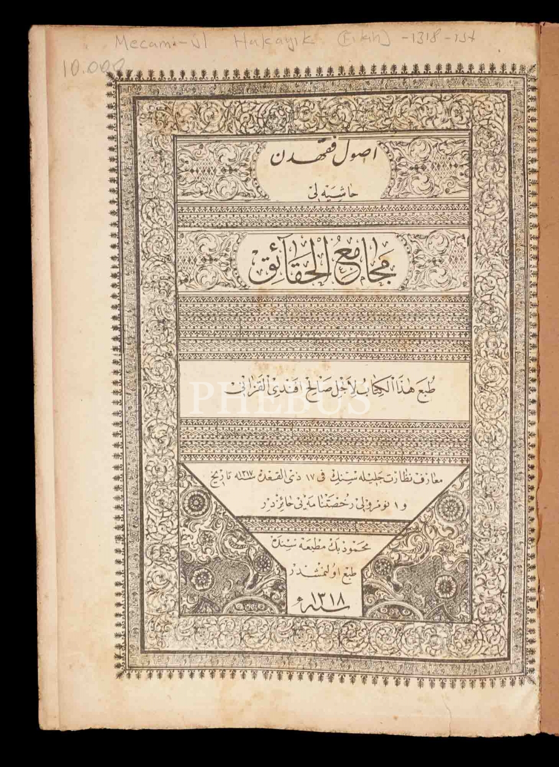 HAŞİYELİ MECÂMİÜ’L-HAKÂYIK, 1318 tarihli, Ebu Saîd el-Hâdimî, Mahmud Bey Matbaası, 372 sayfa, 21x28 cm...