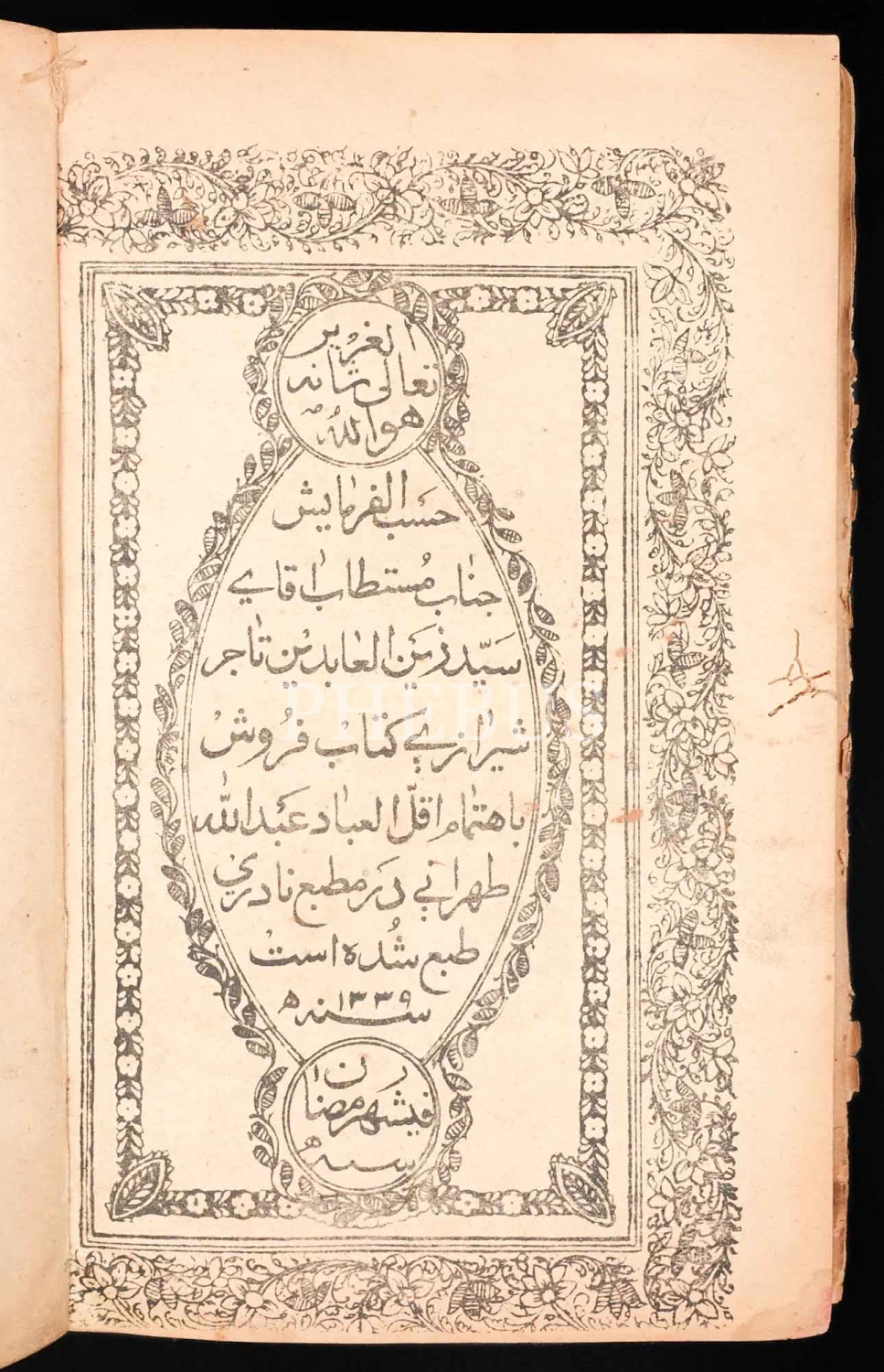 MİFTAHU´L CİNÂN, 1339, Bombay (Hindistan) Taş baskı, Arapça-Farsça, 439+ 71 sayfa, 15x23 cm...