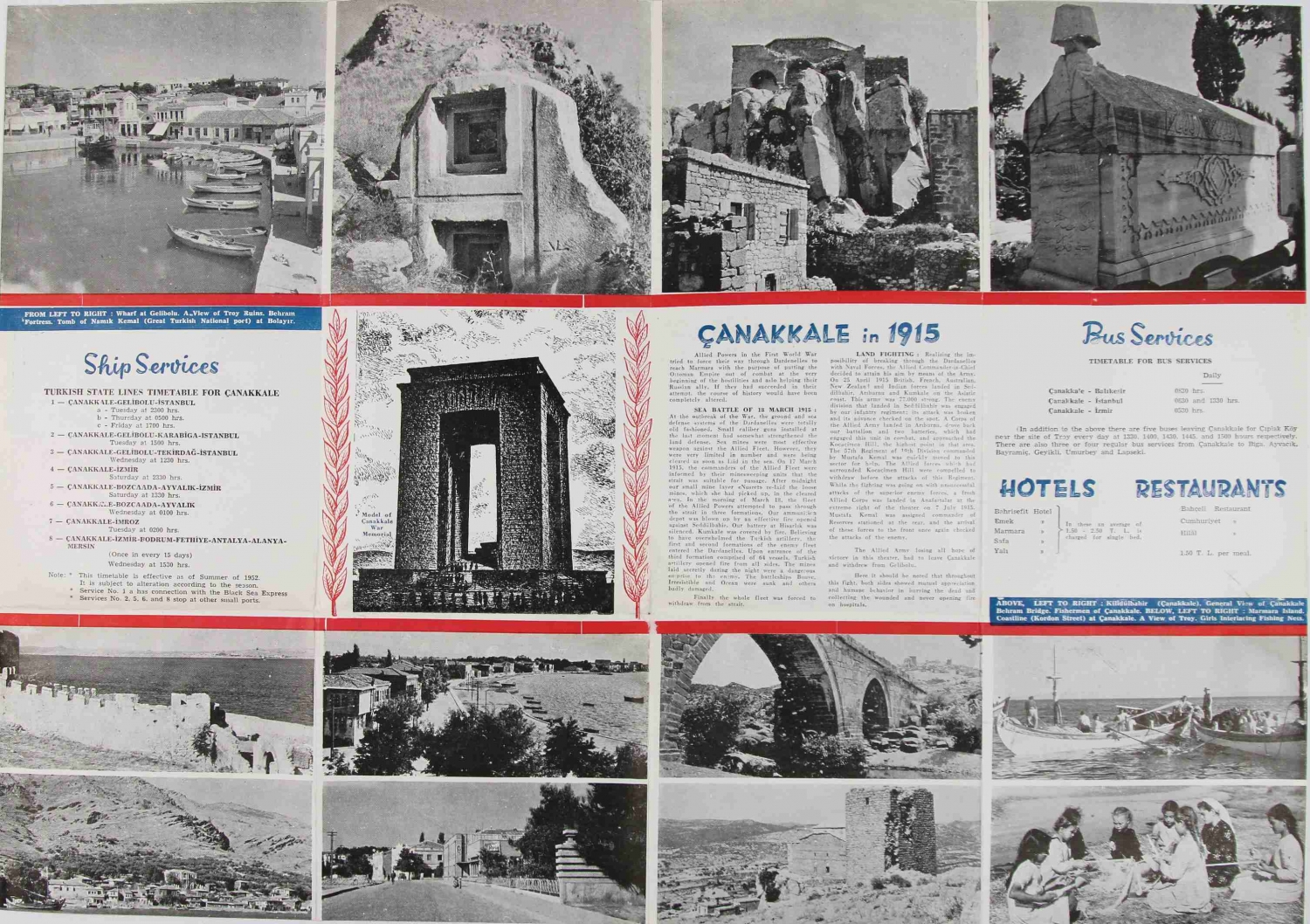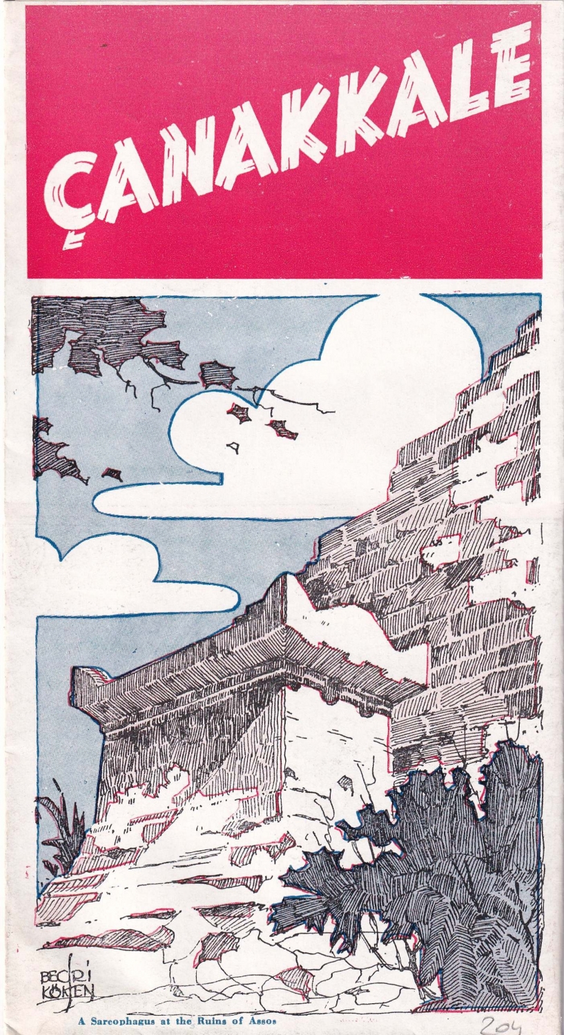 Çanakkale gezi rehberi, Mimar Bedri Kökten çizim kapak, Basın - Yayın ve Turizm Genel Neşriyatı, büyük boy harita, açılınca 45x45 cm