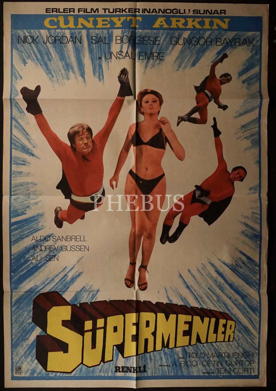 SÜPERMENLER, Tarık Akan, Nick Jordan, Sal Borgese, Güngör Bayrak ve Ünsal Emre, Erler Film, Can Ofset, 70x100 cm...