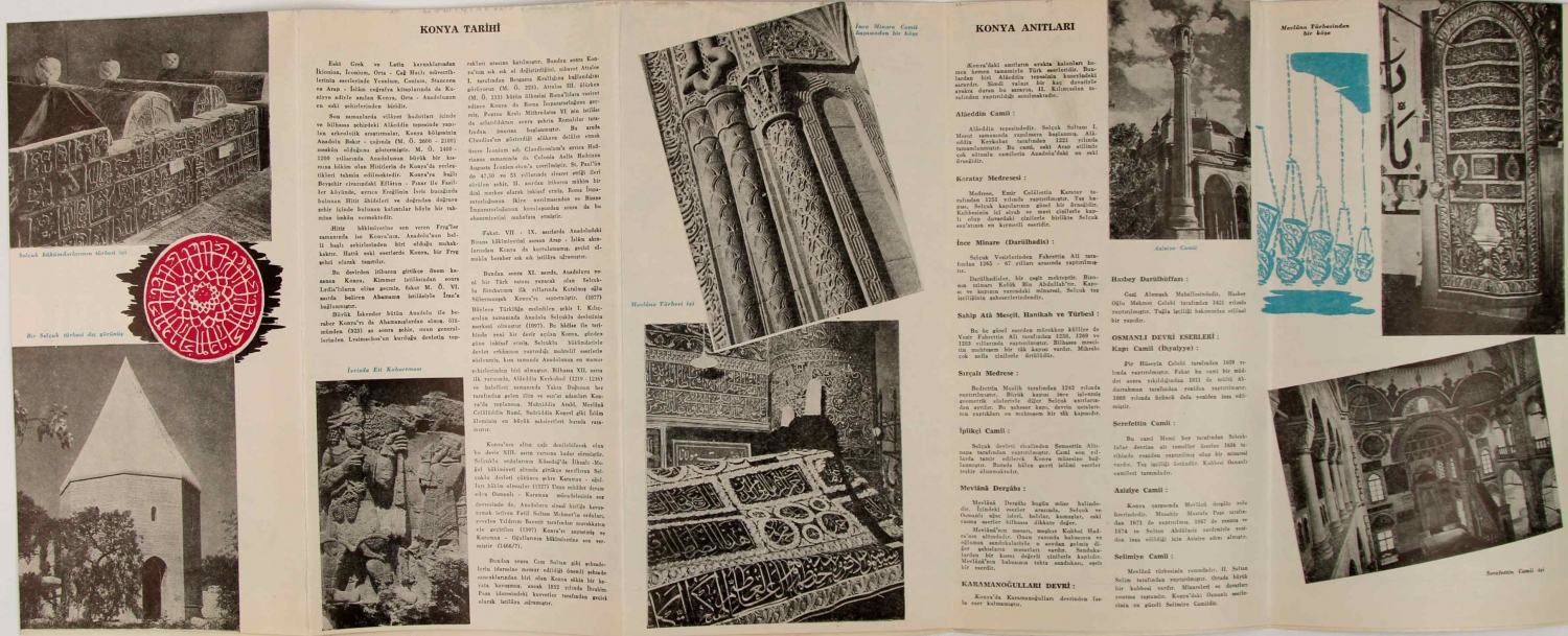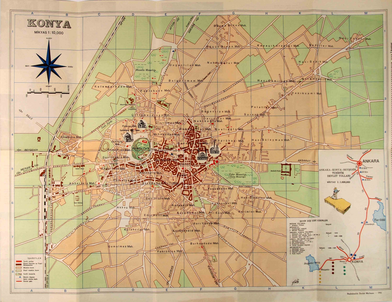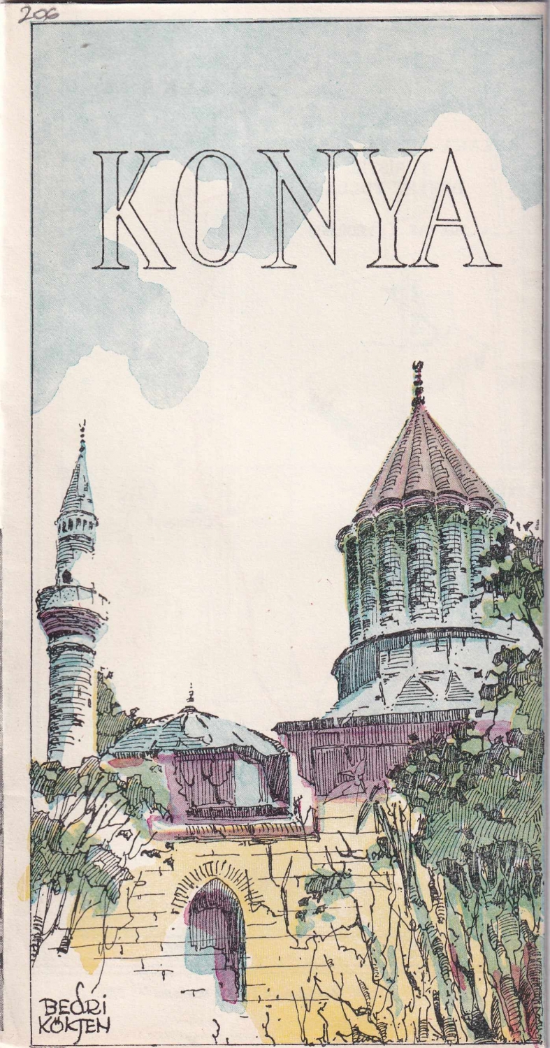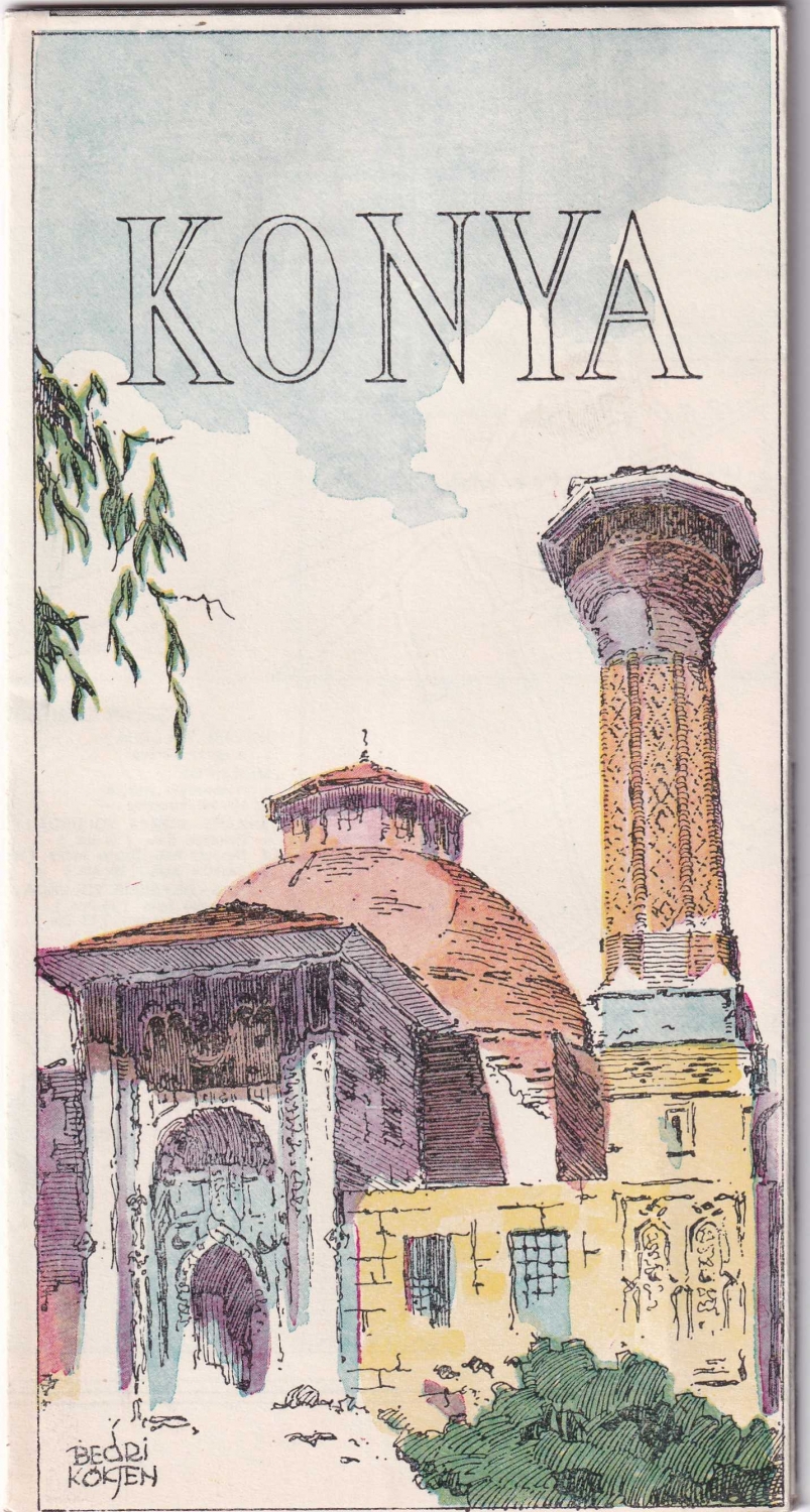 Konya gezi rehberi, Mimar Bedri Kökten çizim kapak, Basın - Yayın ve Turizm Genel Neşriyatı, büyük boy harita, açılınca 70x45 cm