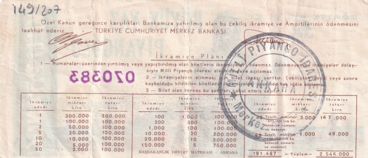Büyük yaz piyangosu, 31 Temmuz 1951, dörtte bir bilet