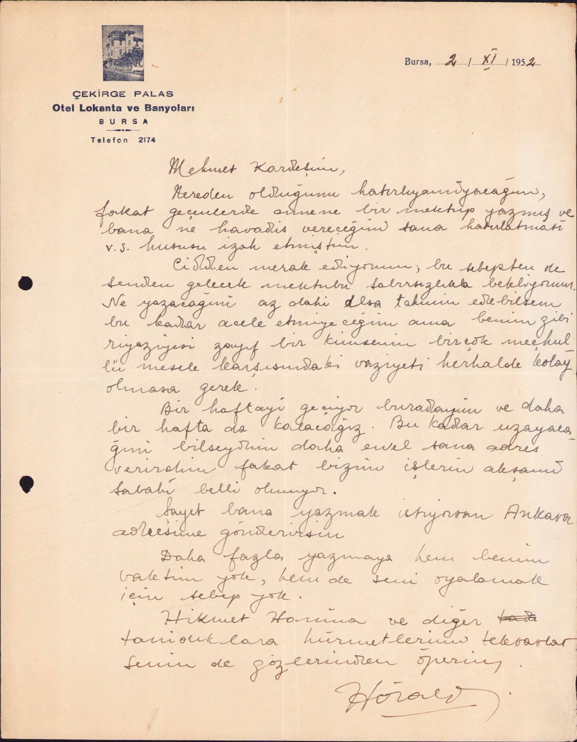 Çekirge Palas Otle Lokanta ve Banyoları Bursa antetli doküman, 24x28 cm
