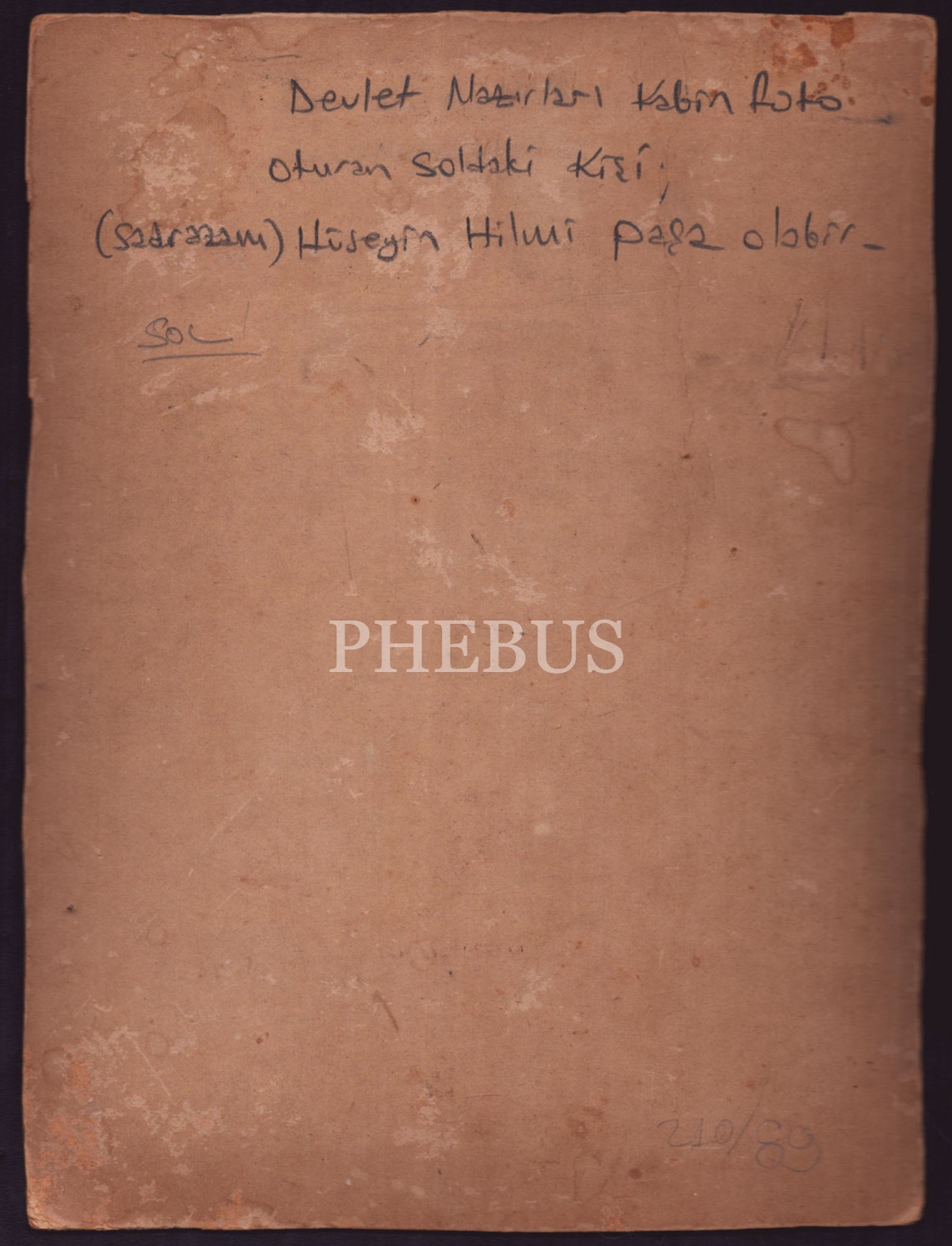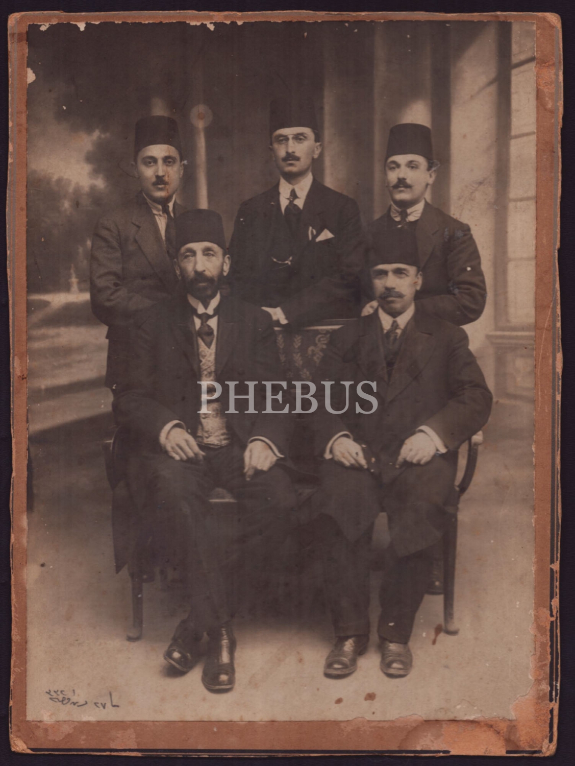 Beş Osmanlı bürokratının stüdyo hatıra fotoğrafı, paspartusuyla birlikte 18x24 cm...