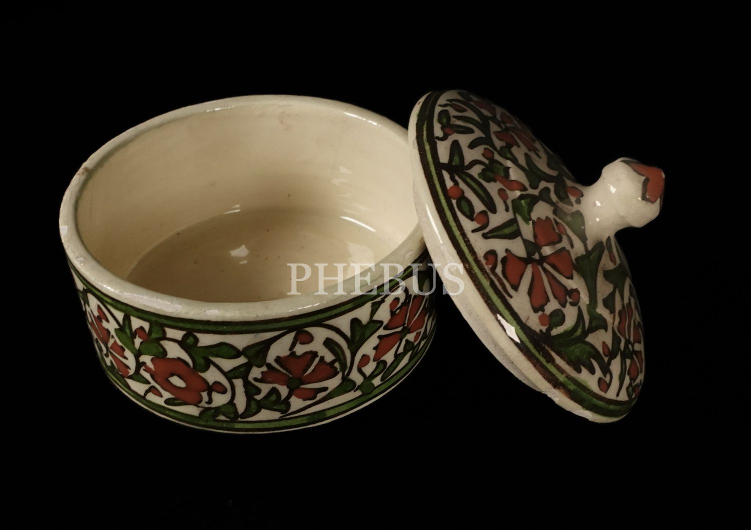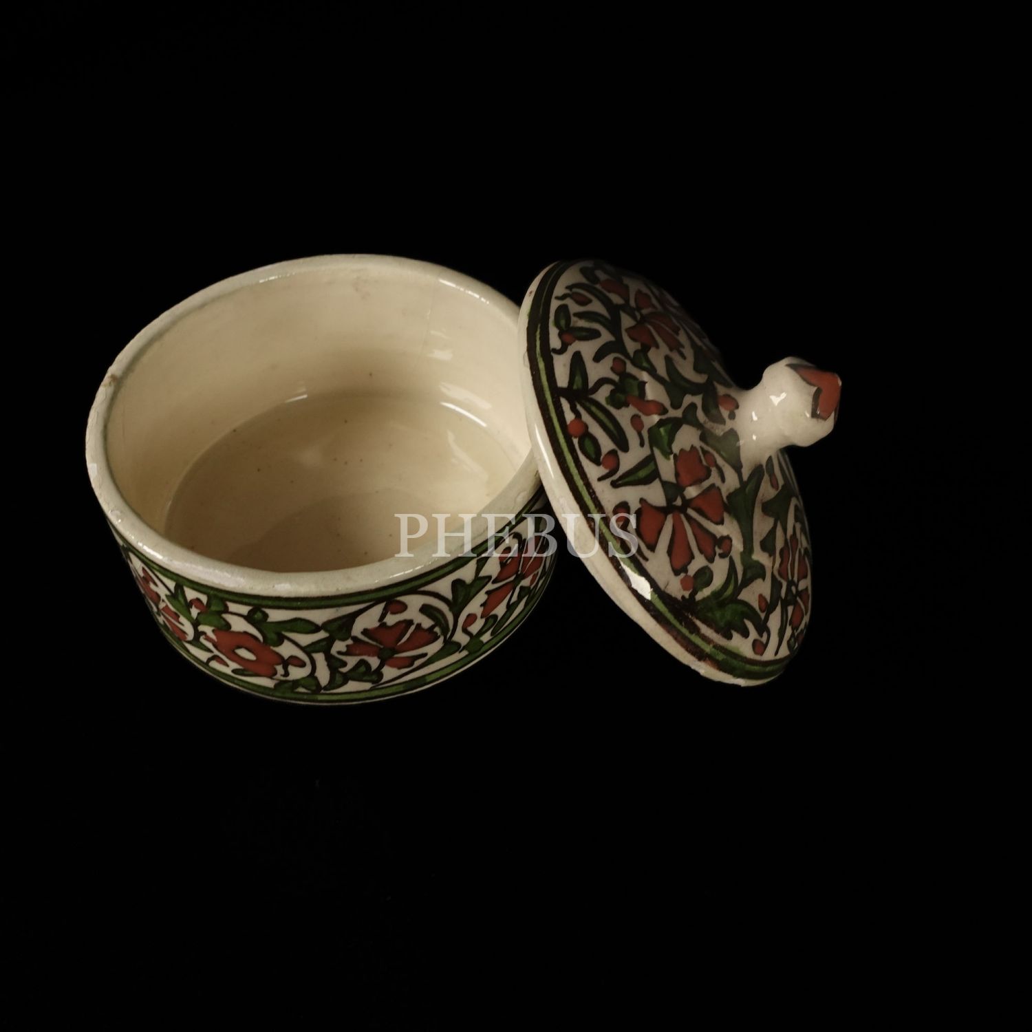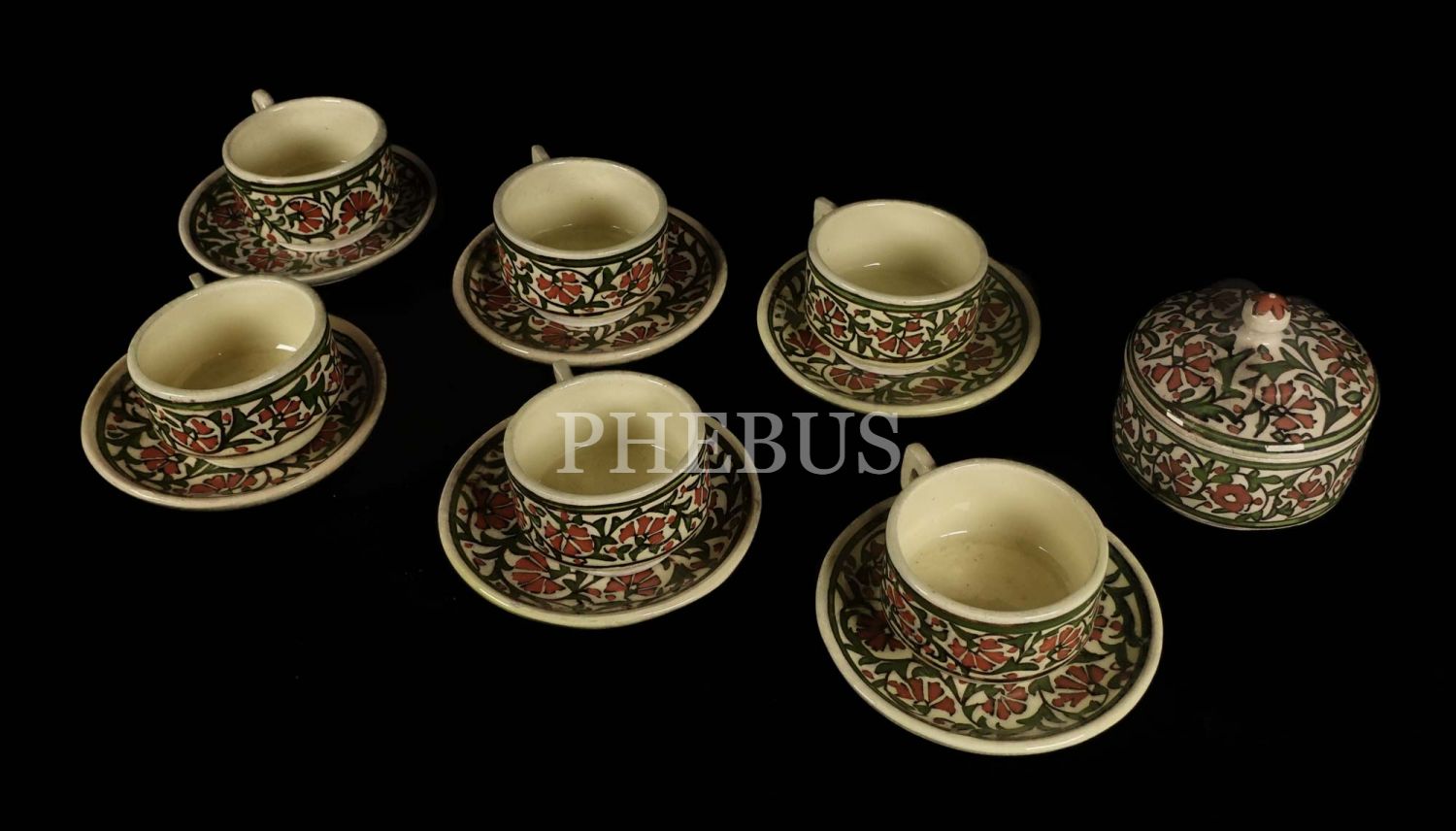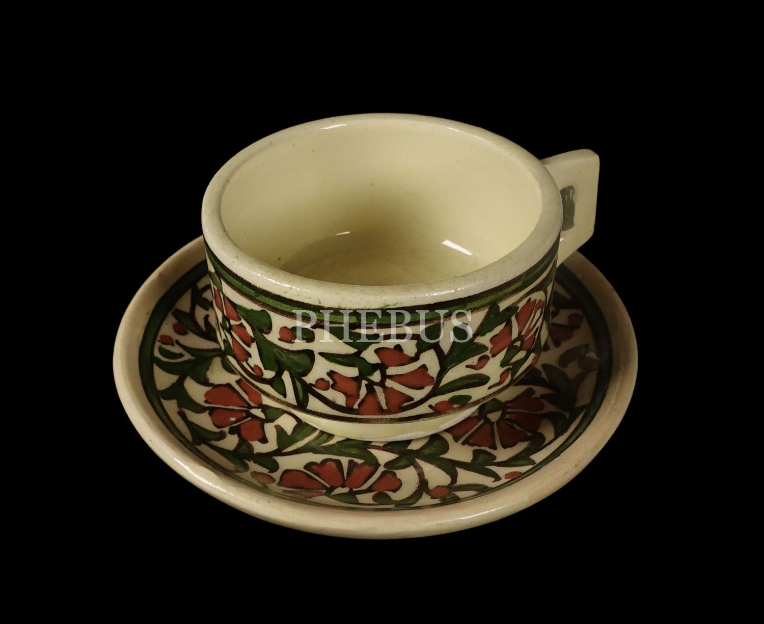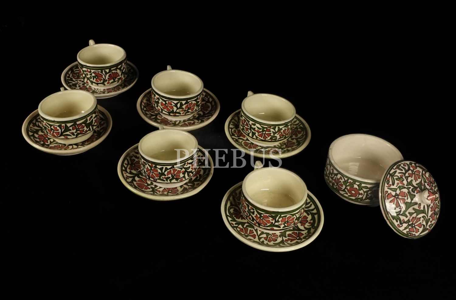 Ürünler yeşil, kırmızı ve kahverengi tonlarında stilize bitkisel motifler ile süslenmiştir...