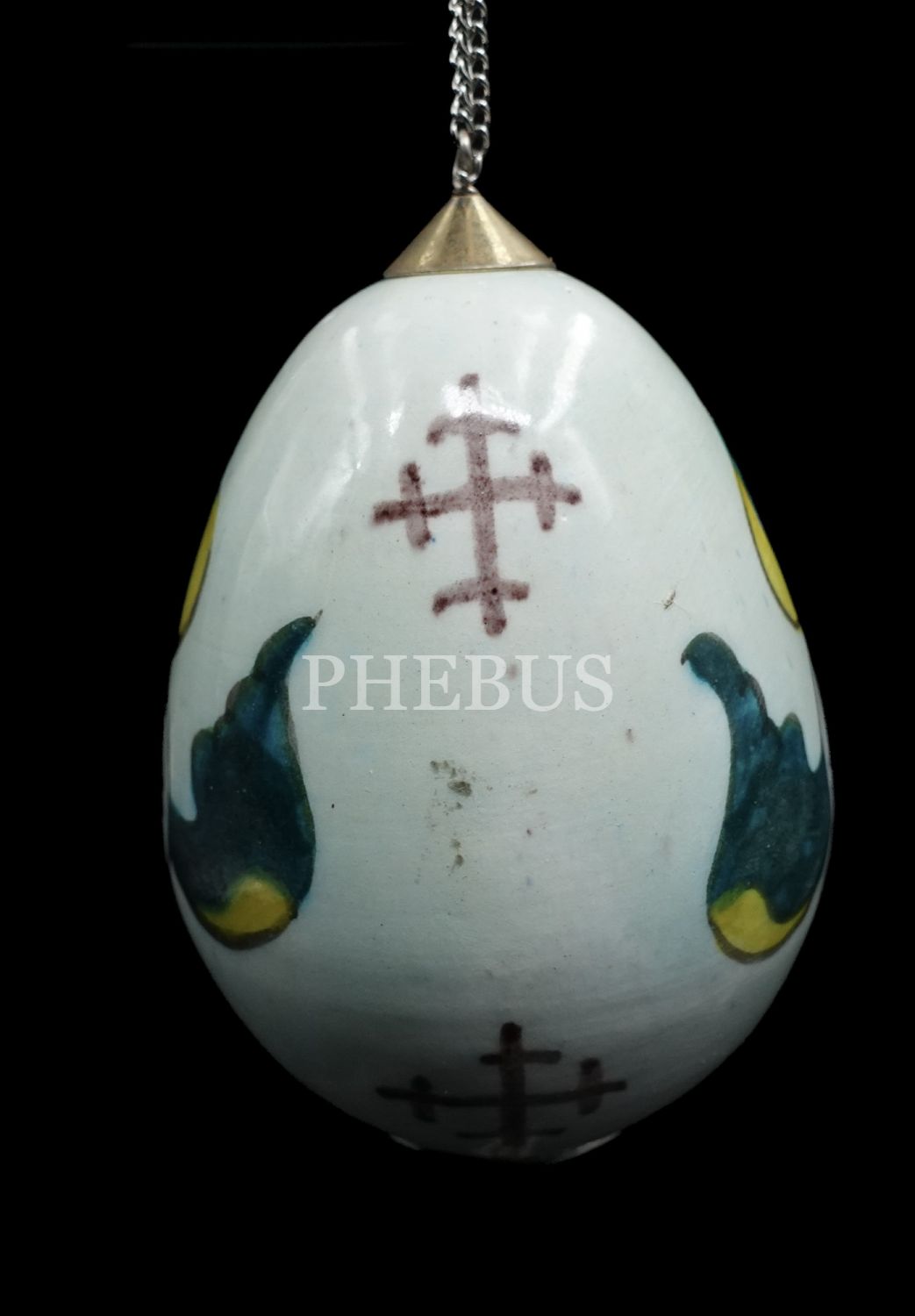 Yumurta formunda tasarlanmış her iki tarafında metal plaka üzerinde zincirler ile süslenmiştir. Gövde üzerinde iki adet melek motifi ve aralarında ikişer ´´Ortodoks Haçı´´ yer almaktadır. Mavi, yeşil ve kahverengi tonlarıyla elle renklendirilmiştir...