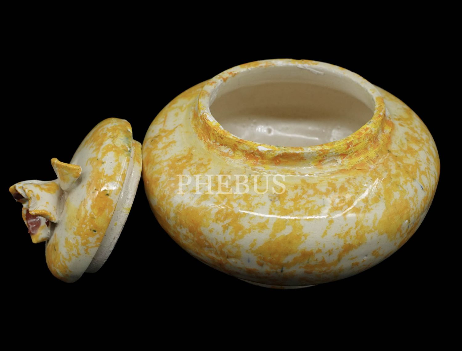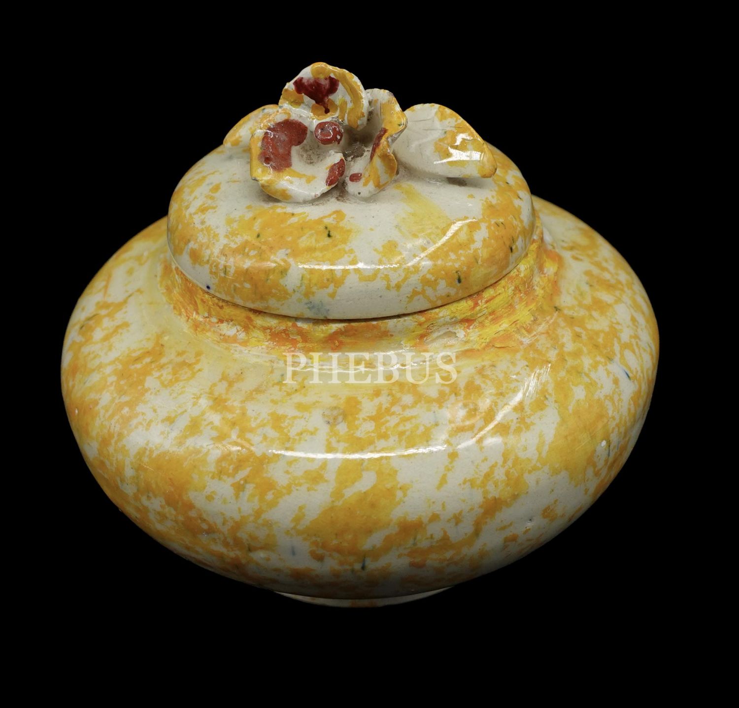 Sarı tonları ile süslenmiş ürünün kapağı çiçek formunda kabartma ile süslenmiştir...