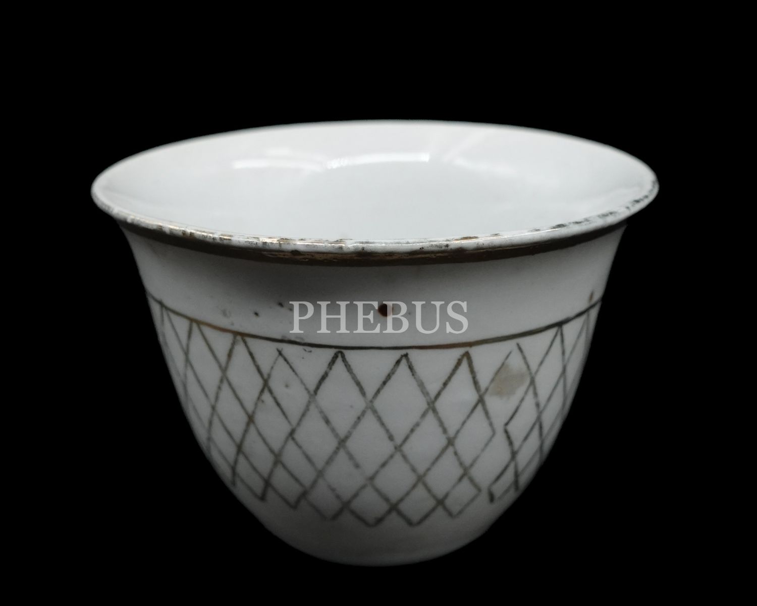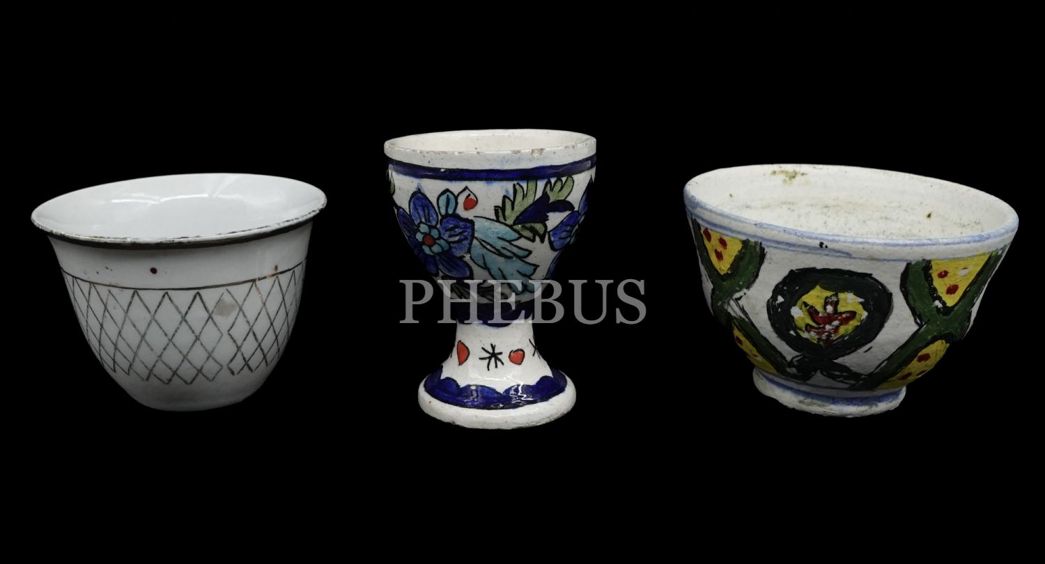 Seramik zarf, seramik fincan ve bir adet porselen fincan lotu