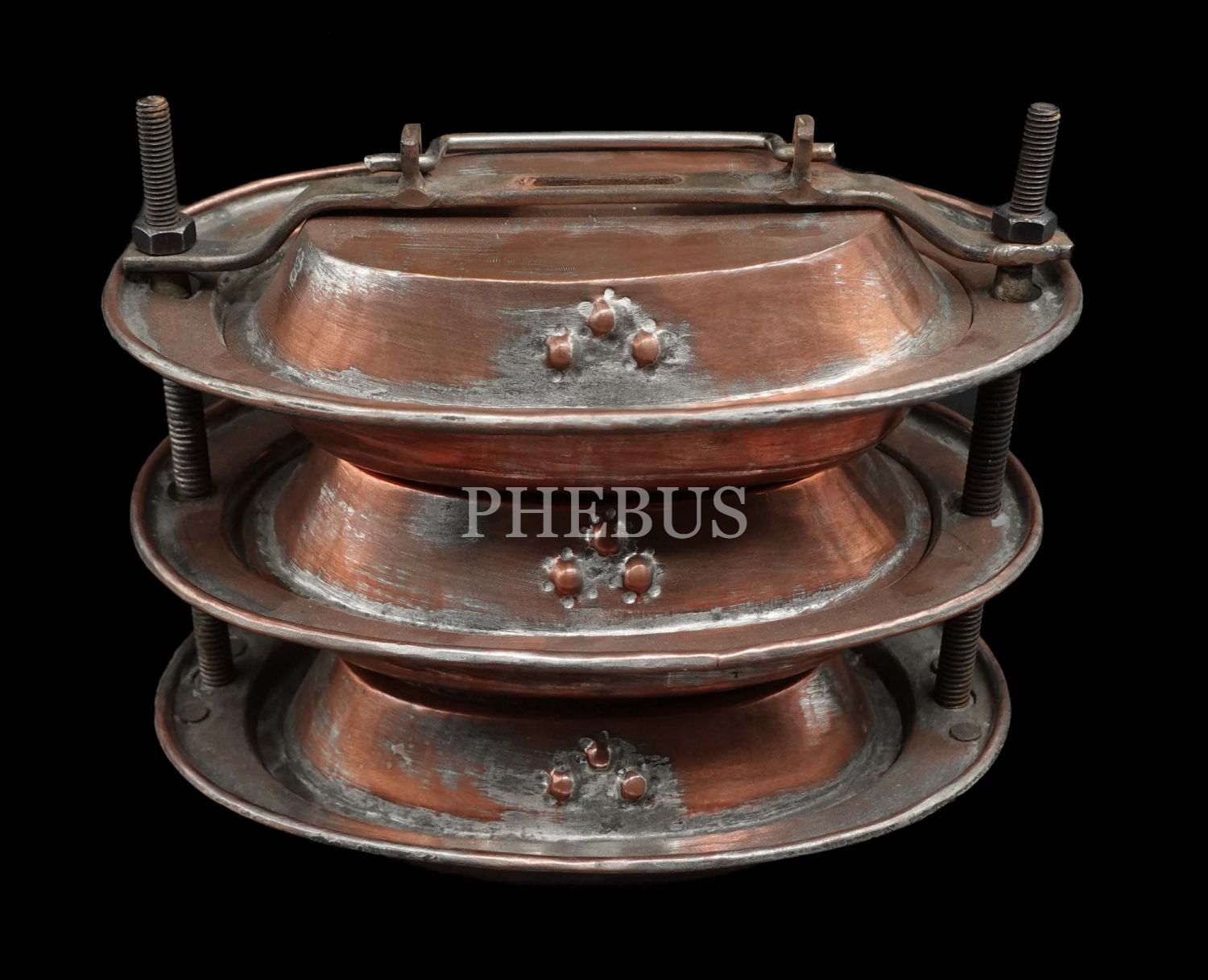 Bakır sefer tası, 3 katlı, 18x15 cm, 667 g...