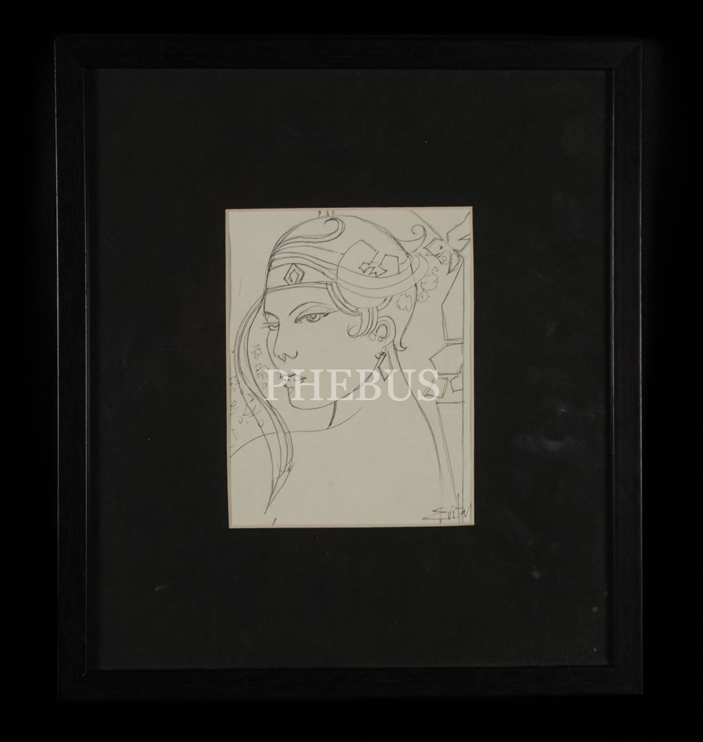 ´Cüneyt Süer´´ imzalı karakalem eskiz çalışması, Çerçevesi ile birlikte 31x27 cm...