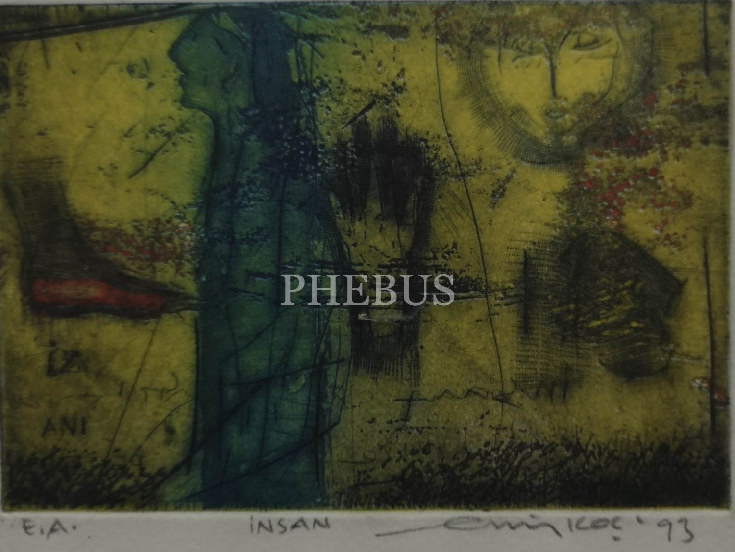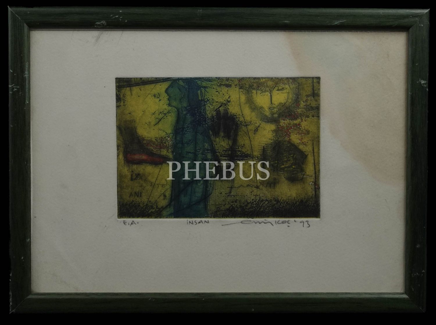 ´Emin Koç´´ imzalı karışık teknik çalışması, Çerçevesi ile birlikte 29x21 cm...