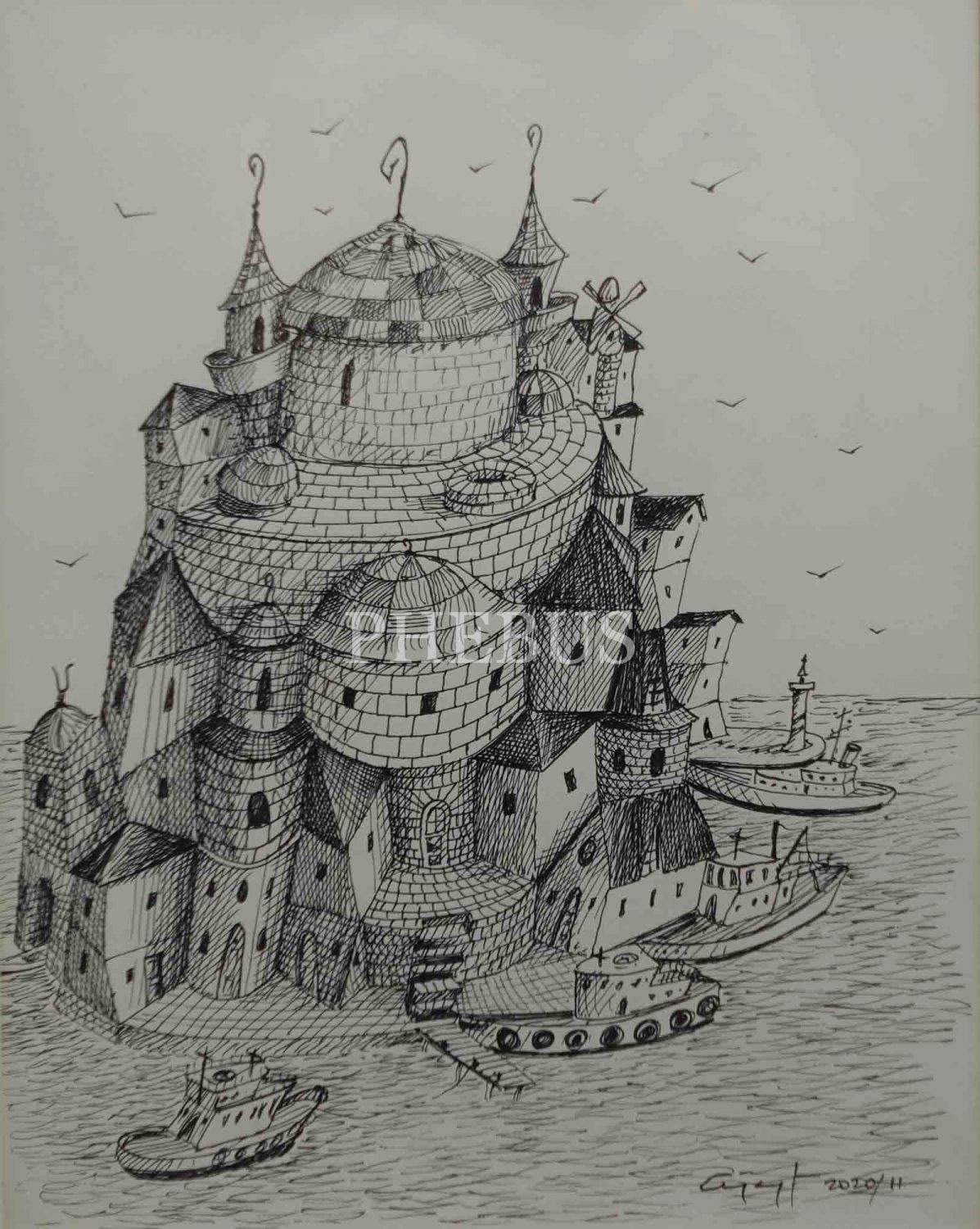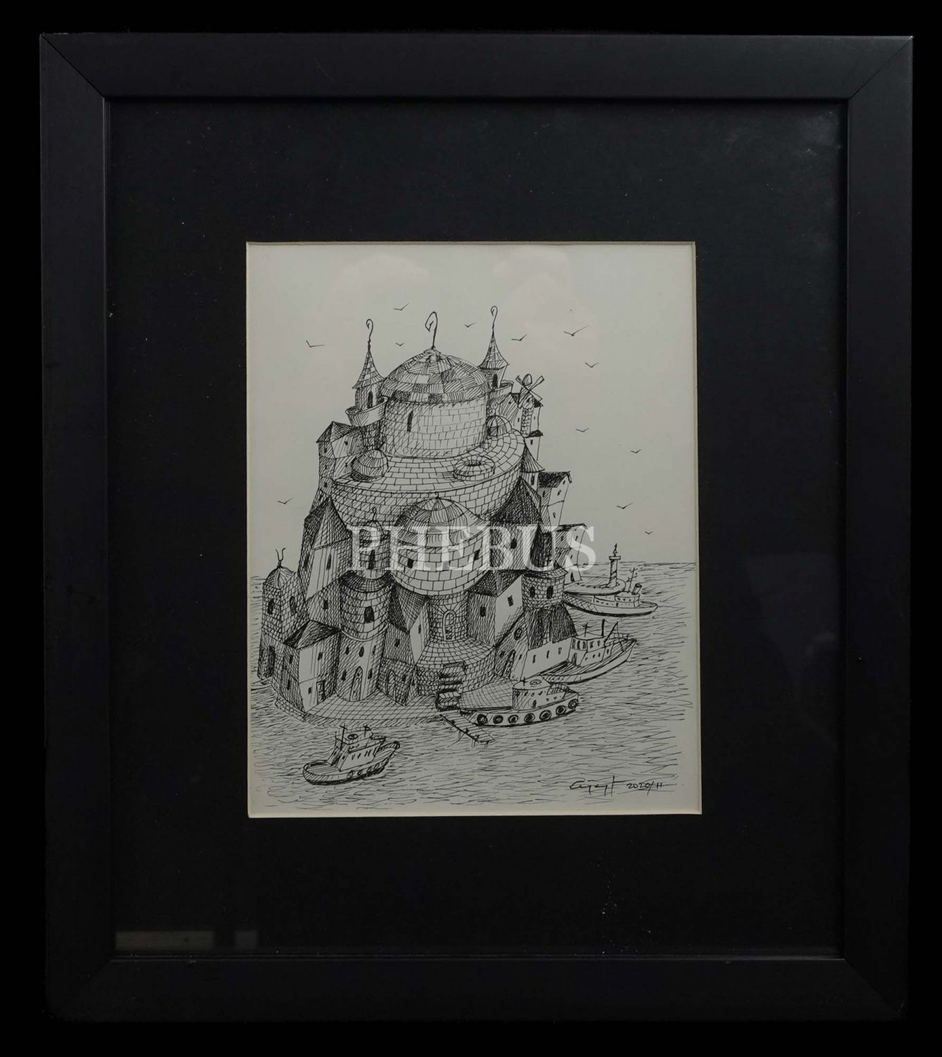 ´Cüneyt Süer´´ imzalı karakalem çalışması, çerçevesi ile birlikte 31x27 cm...