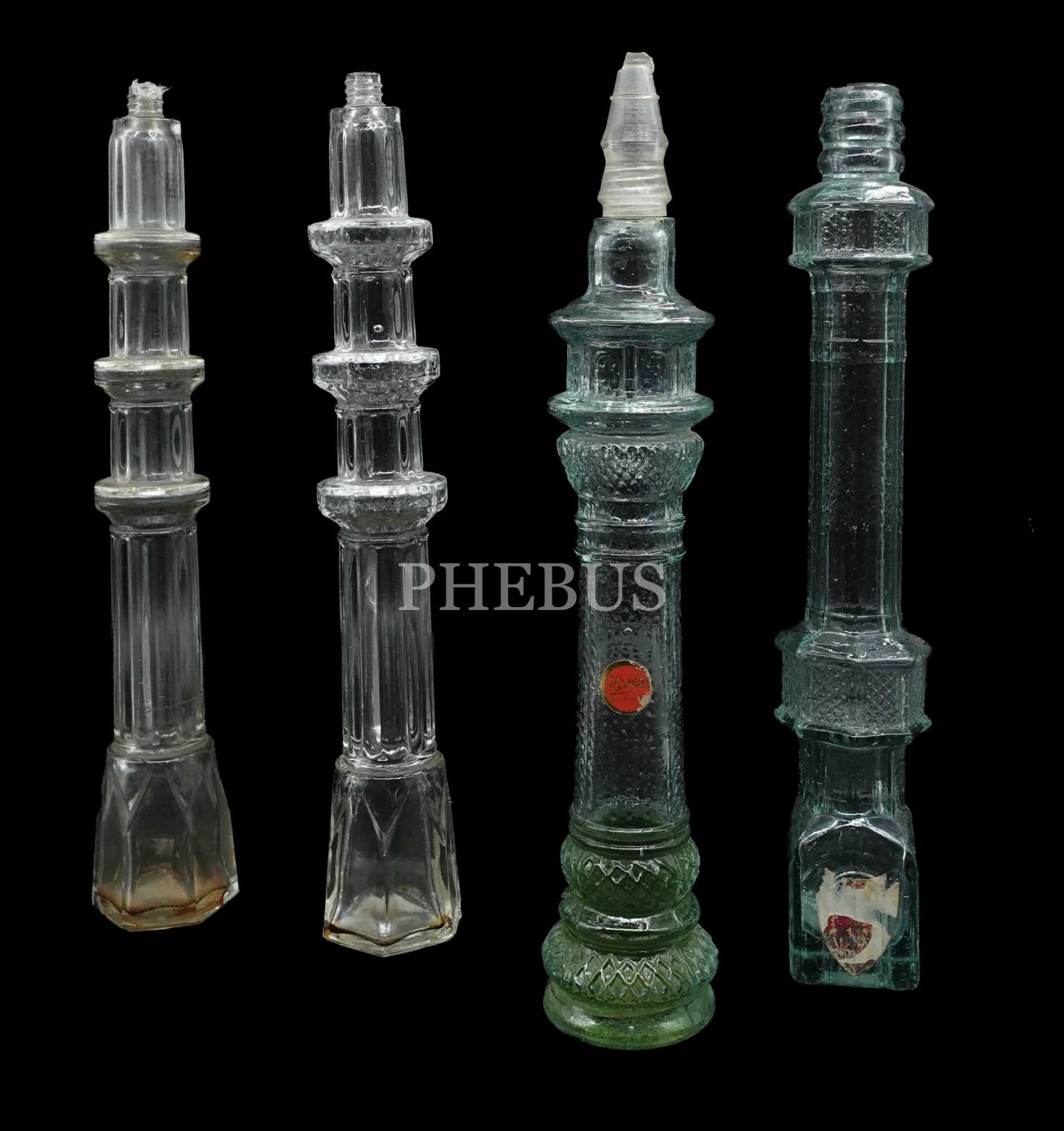 4 adet Minare şeklinde kolonya şişesi lotu, Ort; 31x5 cm...