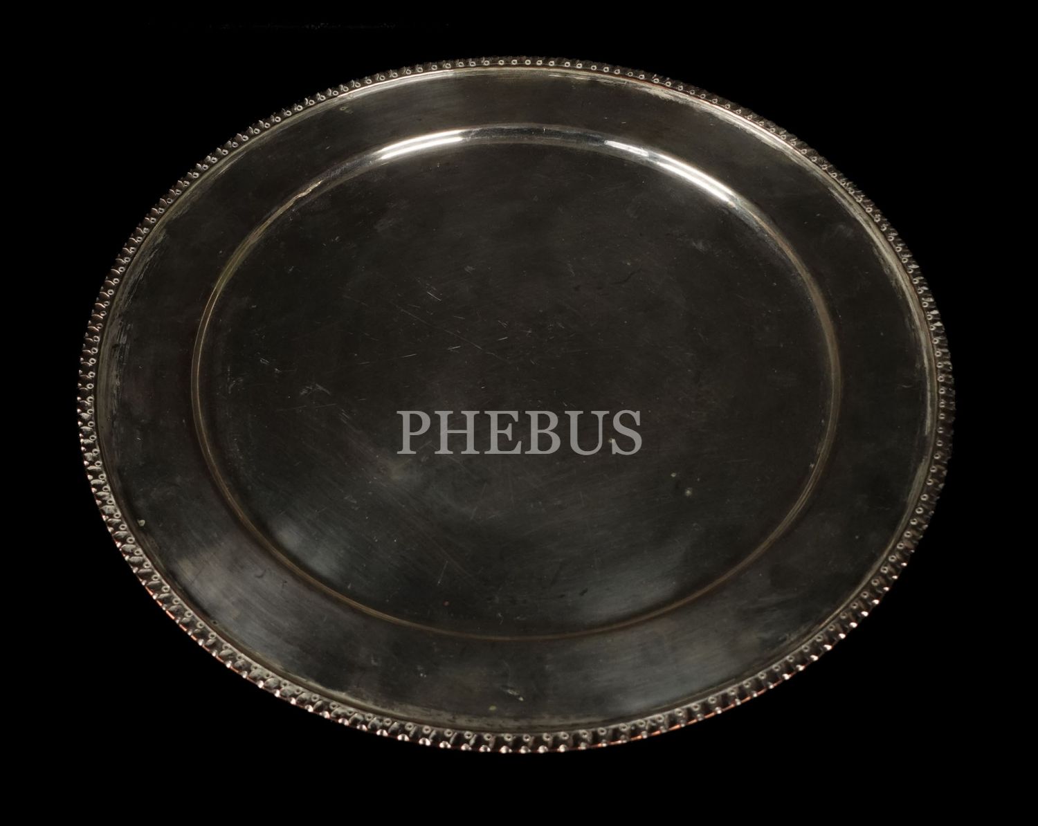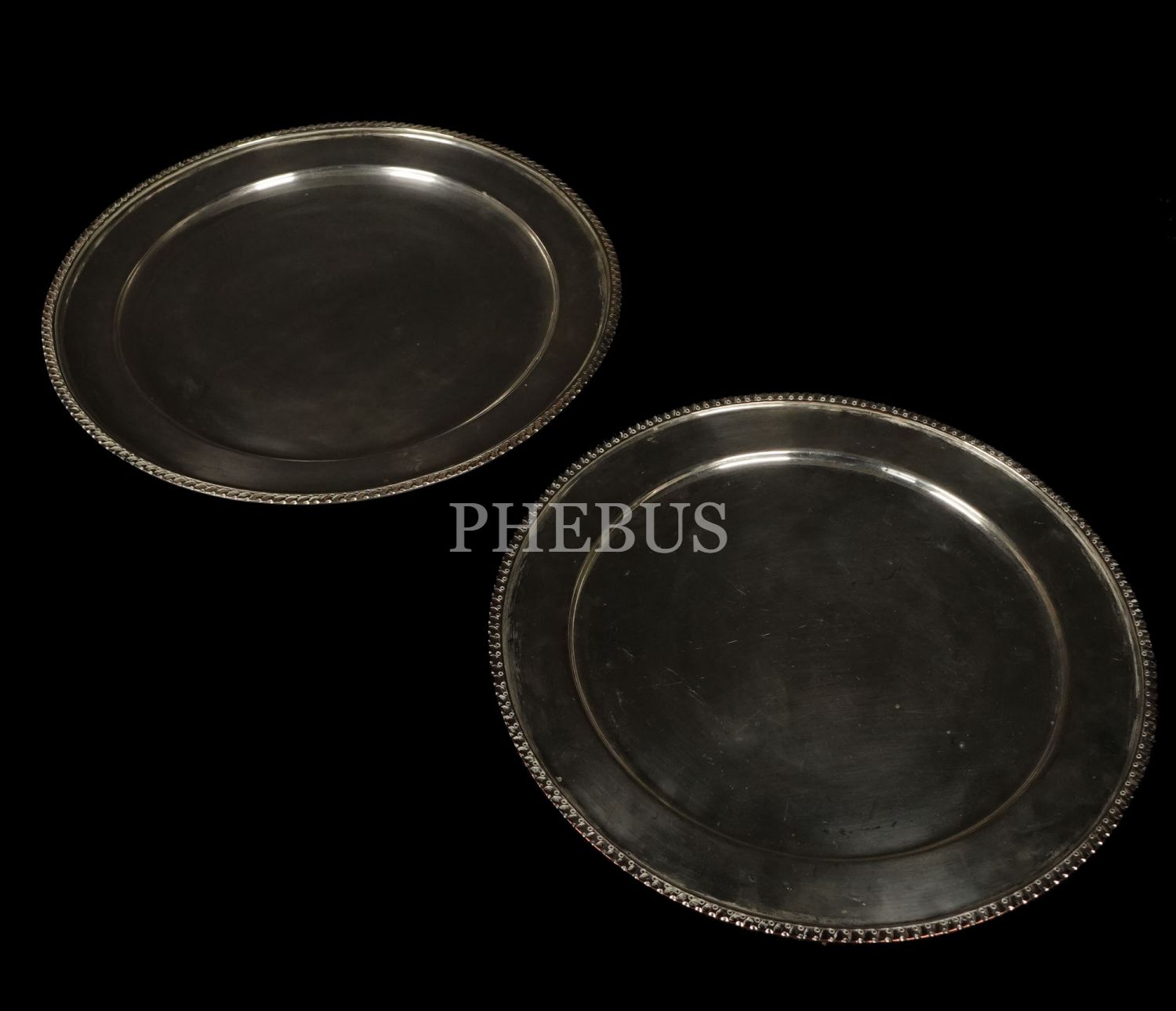 Gaziantep Kervancıoğlu damgalı bakır üzeri gümüş kaplama 2 adet yuvarlak servis tabağı, 38 cm...