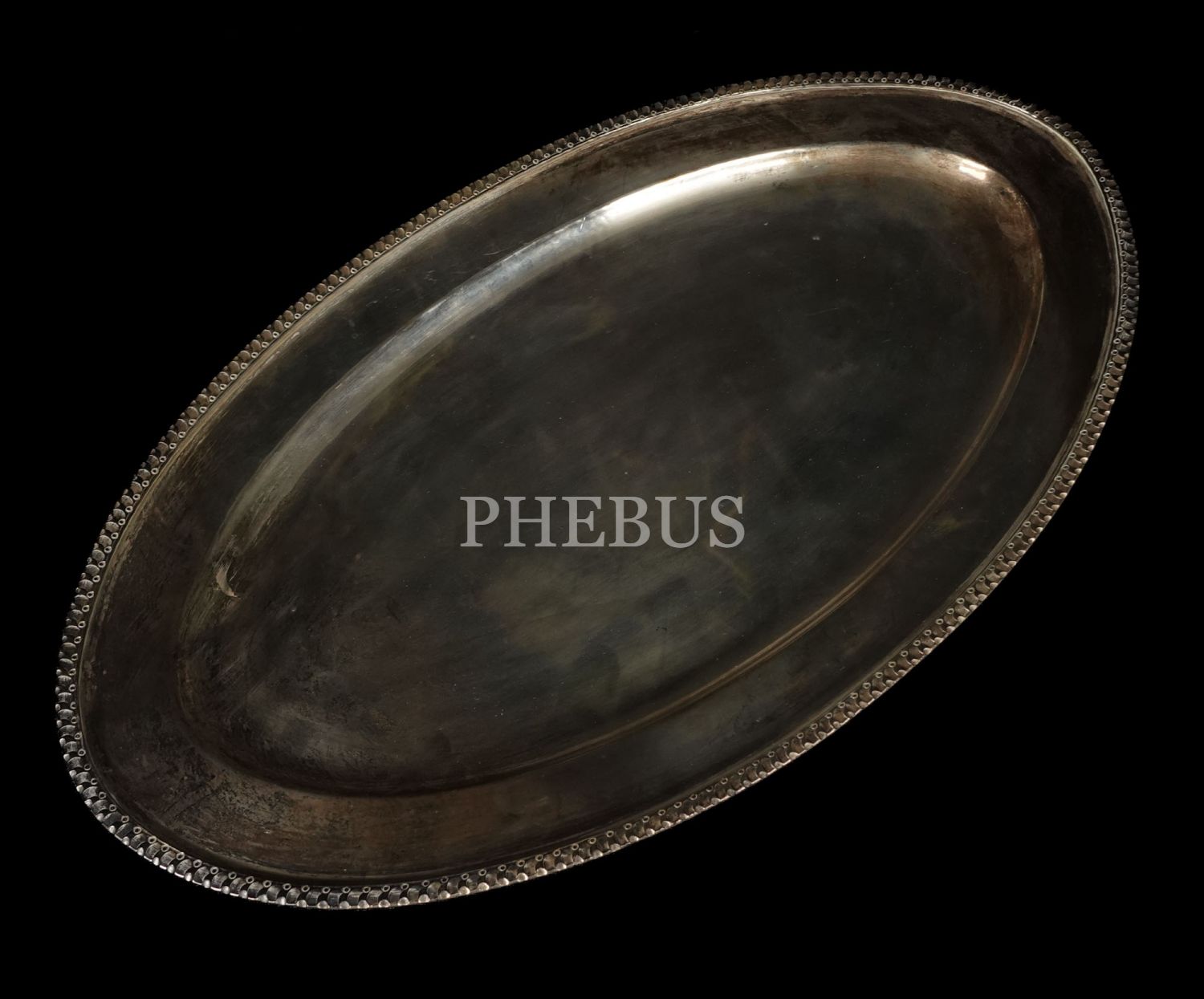 Gaziantep Kervancıoğlu damgalı bakır üzeri gümüş kaplama kayık servis tabağı, 48x28 cm...