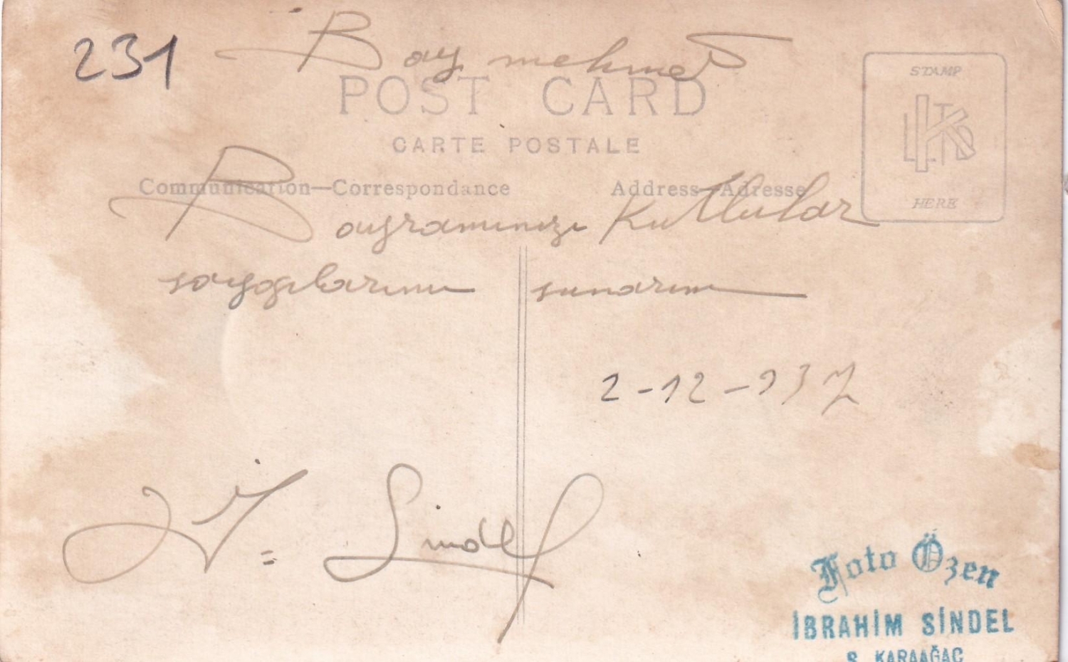 Isparta - Şarkikaraağaç, Foto Özen - İbraim Sindel, arkası bayram tebrikli