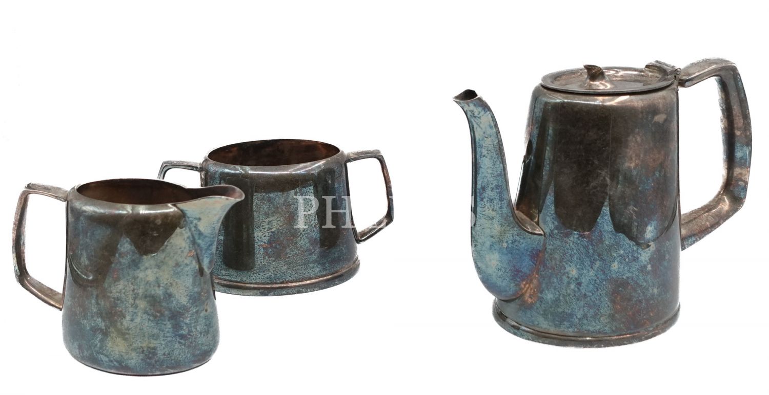 İngiliz malı BSL Silver Plate damgalı gümüş kaplama sütlük takımı, 17x13x8 cm, 11x8x6cm, 12x7x7cm...