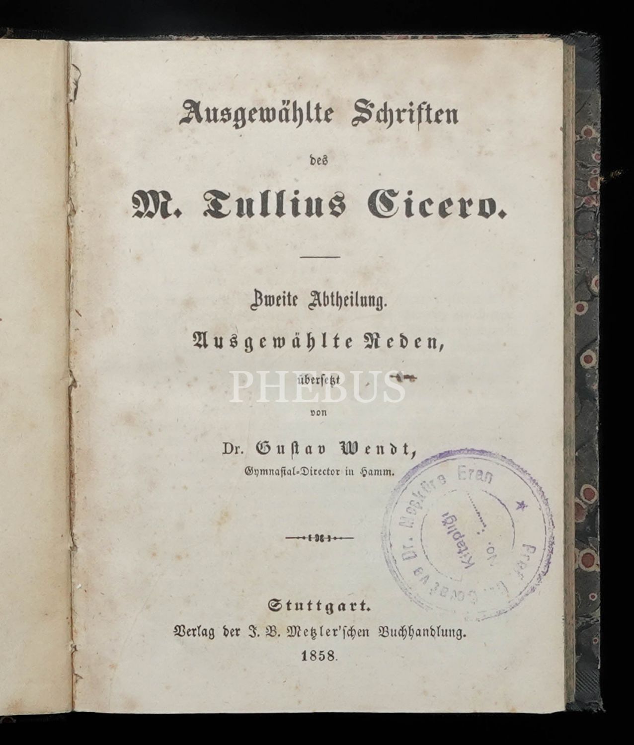 AUSGEWÄHLTE SCHRIFTEN DES M. TULLIUS CICERO, Dr. Gustav Wendt, 1858,Metzler, Stuttgart, 358 sayfa, 12x15 cm...
