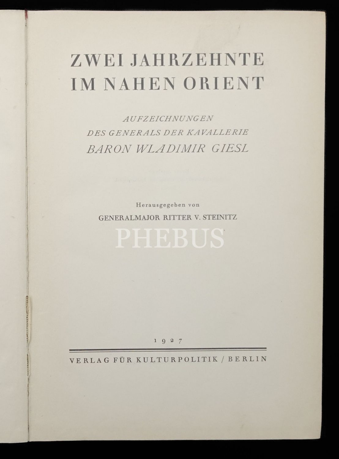 ZWEI JAHRZEHNTE IM NAHEN ORİENT, Baron Giesl, 1927, Kültürpolitik Berlin, 331 sayfa, 17x24 cm...