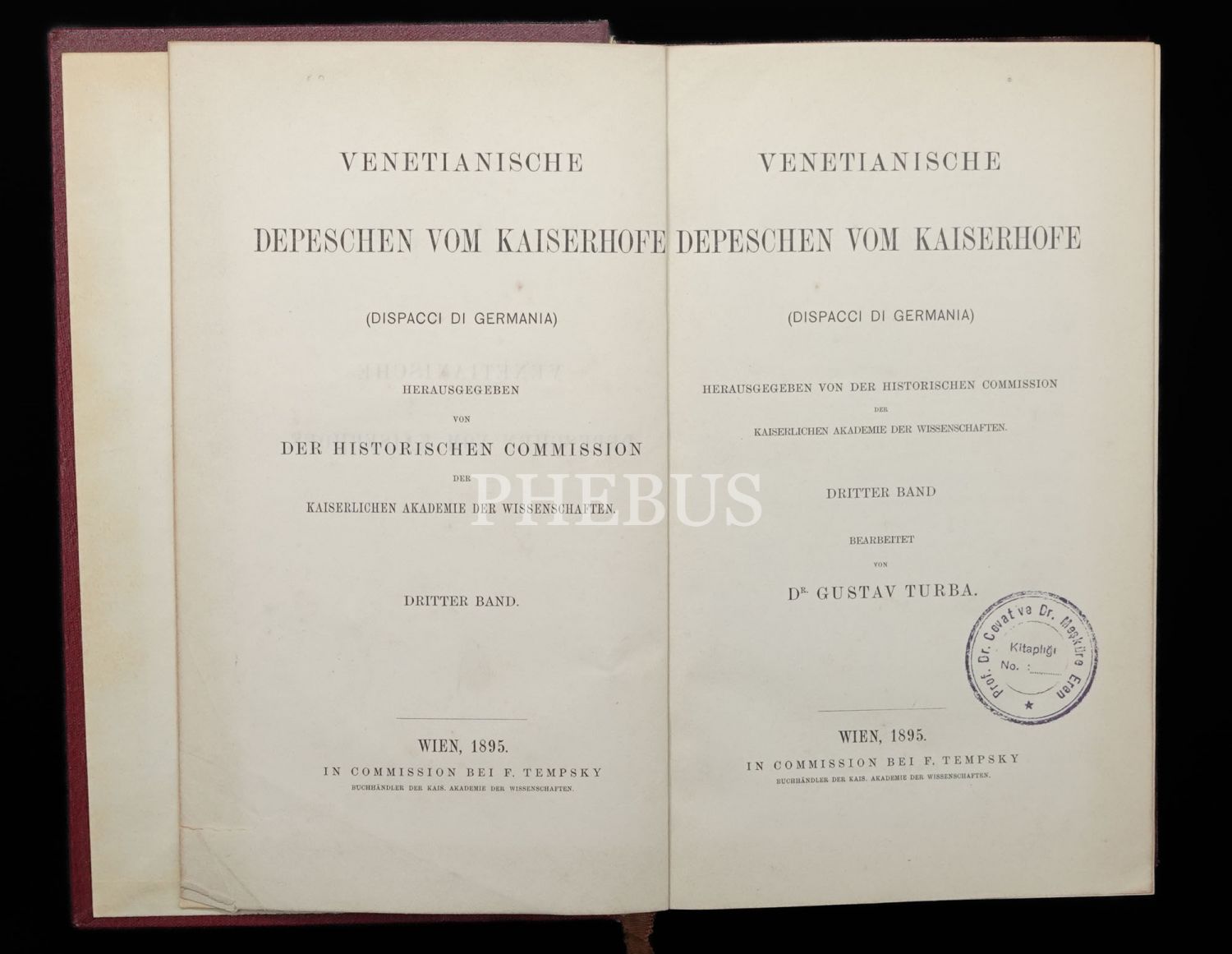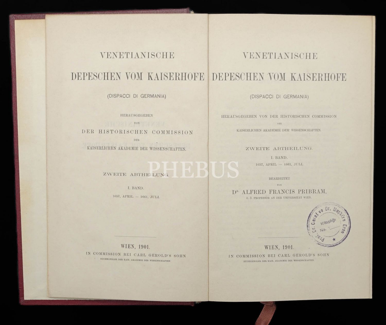 VENETIANISCHE DEPESCHEN VOM KAISERHOFE (1. ve 3. Cilt), Dr. Alfred Francis Pribram, 1901, In Commission Bei Carl Gerold´s Sohn Wien, 729+778 sayfa, 17x25 cm...