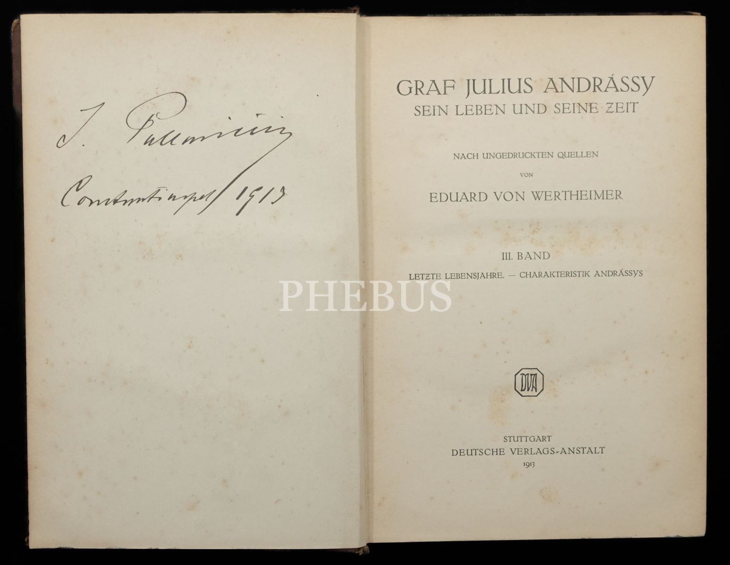 GRAF JULIUS ANDRASSY SEIN LEBEN UND SEINE ZEIT (2. ve 3. Cilt), Eduard von Werheimer, 1913, Deutsche Verlags-Anstalt Stuttgart, 420+373 sayfa, 18x25 cm