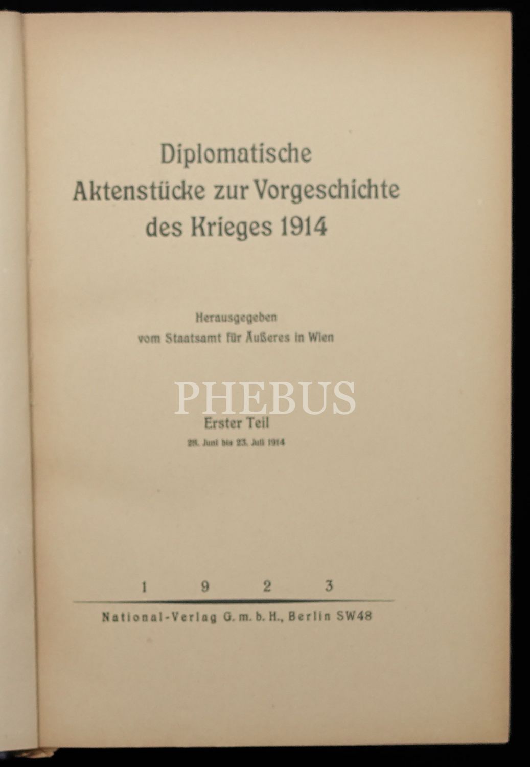 DIPLOMATISCHE AKTENSTUCKE ZUR VORGESCHICHTE DES KRIEGES 1914 ERSTER TEİL, National-Verlag G.m.b. H. Berlin, 1923, 145 sayfa, 18x25 cm