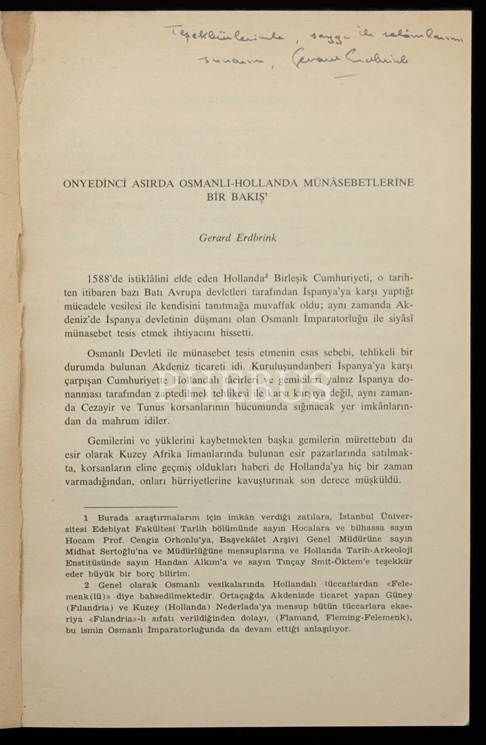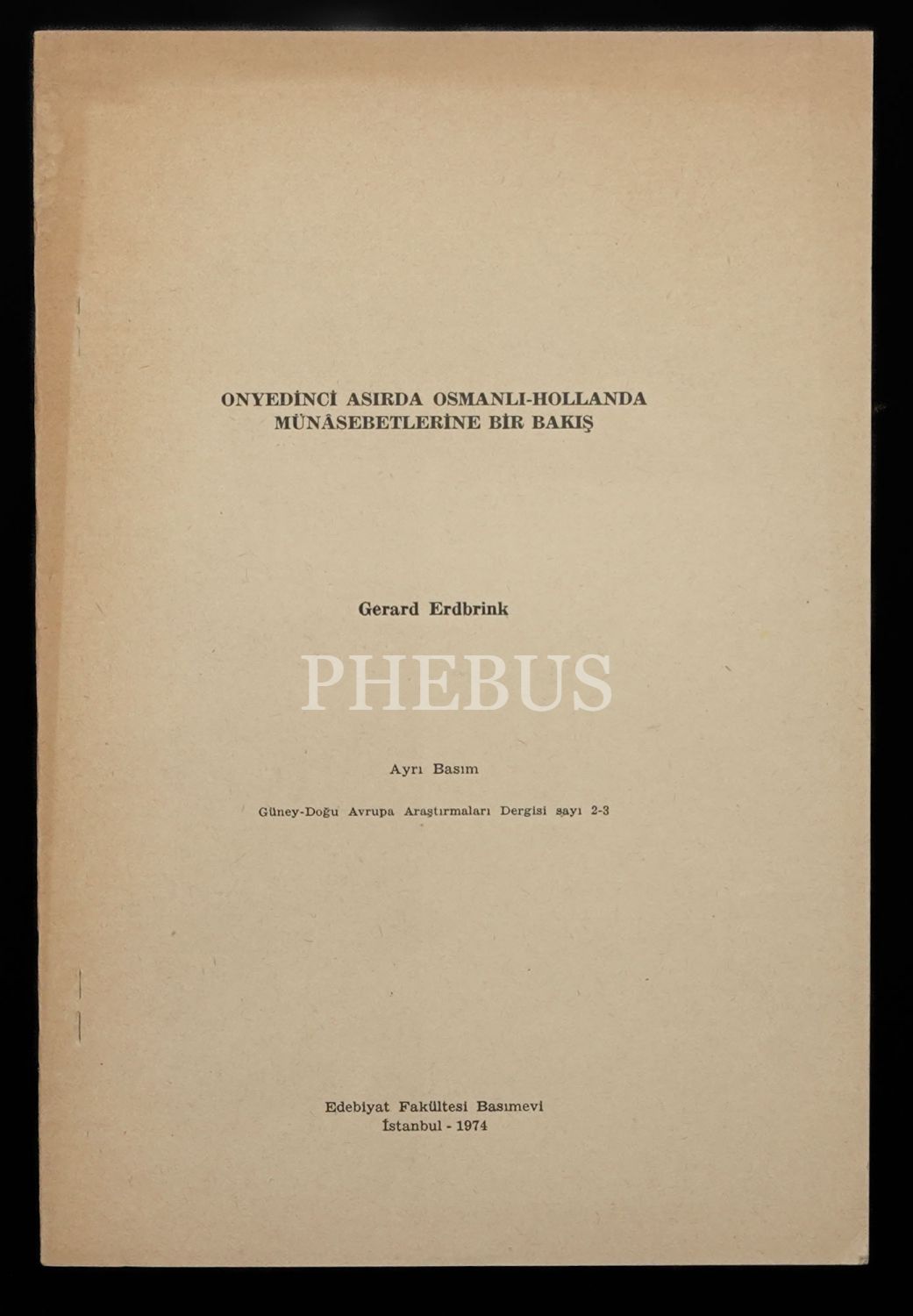 ONYEDİNCİ ASIRDA OSMANLI-HOLLANDA MÜNÂSEBETLERİNE BİR GİRİŞ, Gerard Erdbrink, 1974, Edebiyat Fakültesi Basımevi (Ayrı Basım), 159-180 sayfa aralığı, 17x24 cm...
