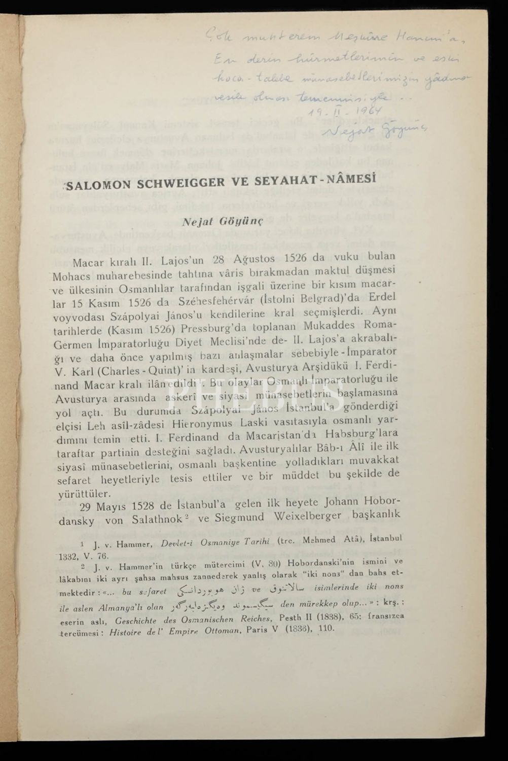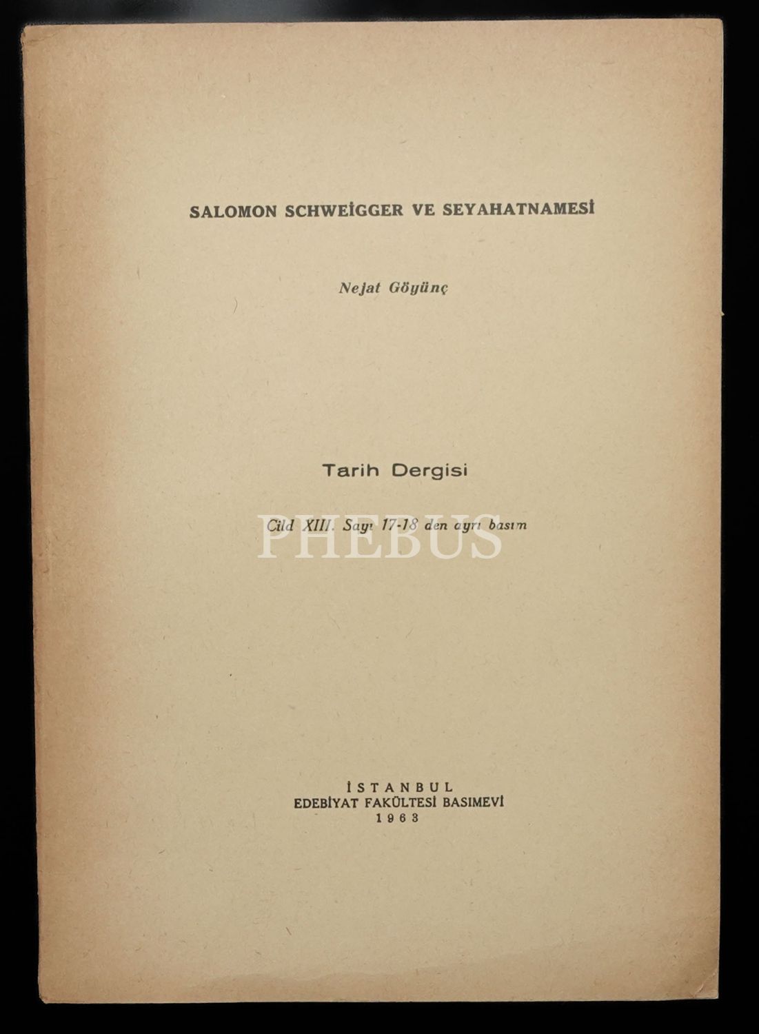 SALOMON SCHWEİGGER VE SEYAHATNAMESİ, Nejat Göyünç, 1963, İstanbul Edebiyat Fakültesi Basımevi (Ayrı Basım), 119-140 sayfa aralığı, 17x24 cm...