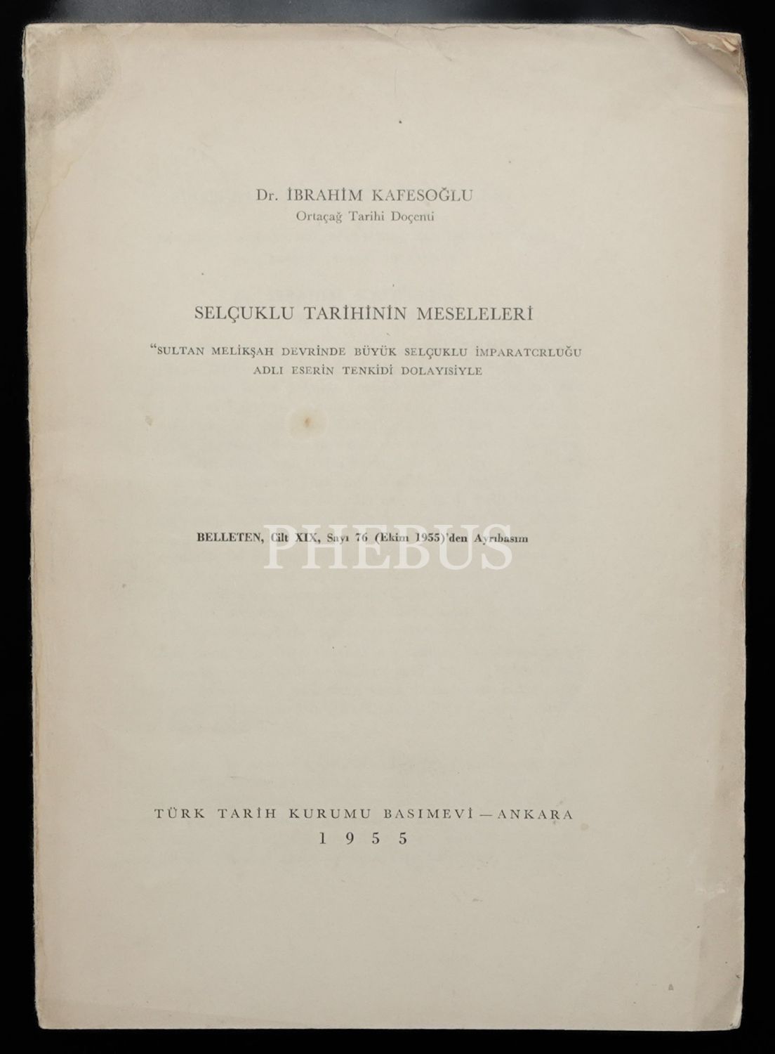SELÇUKLU TARİHİNİN MESELELERİ, Dr. İbrahim Kafesoğlu, 1955, Türk Tarih Kurumu Basımevi Ankara (Ayrı Basım), 463-489 sayfa aralığı, 17x24 cm...